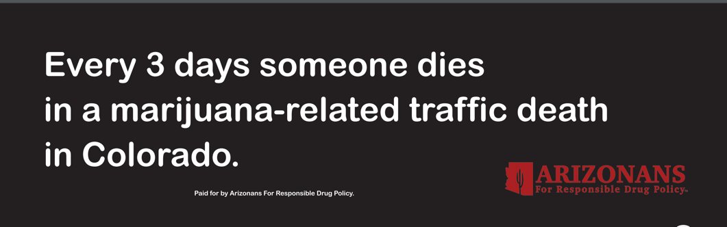 On Monday, the organization announced that it’s launching a new ad campaign. Its latest billboard, a stark black-and-white graphic, has one sentence: “Every 3 days someone dies in a marijuana-related traffic death in Colorado.” No source on that factoid, however.