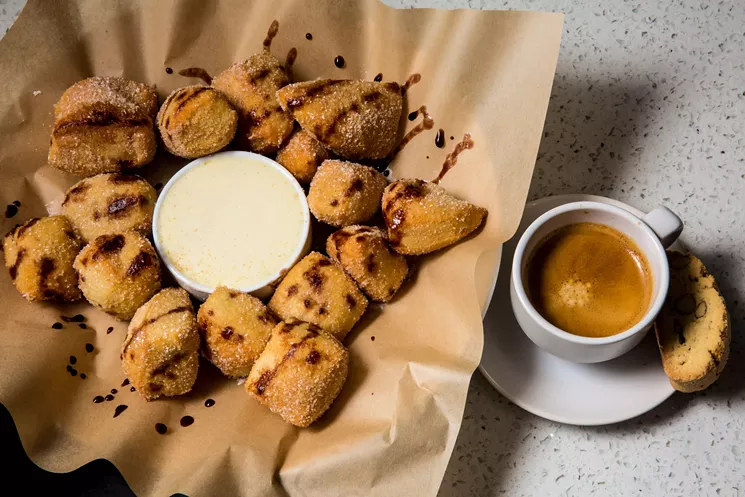 The most indulgent way to finish a meal at Dieci is with a platter of freshly fried zeppole. The deep-fried dough, accompanied with a small ramekin of amaretto anglaise, makes it pretty impossible to practice anything resembling moderation.