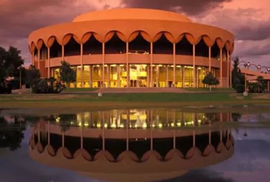 In 1957 then ASU President Grady Gammage called on famous architect Frank Lloyd Wright to help create a unique auditorium for the university. Originally Wright had the design that would eventually become Gammage Auditorium in mind for Baghdad, Iraq but ended up placing the opera house in Tempe instead. The 3,000-seat performance hall is 80 feet tall and measures 300 by 250 feet, flanked on either side by giant pedestrian bridges. The construction of the $2.46 million building – the only public building Wright designed in the state of Arizona – took 25 months and was completed in September 1964. The multifunctional auditorium can be used for opera, musical and dramatic productions, symphony concerts and lectures. And today, Arizona State University’s Gammage is one of the largest university-based presenters of performing arts in the world.