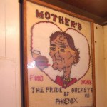 The hours of operation read 11 to 9 outside of Mother’s Bar and Grill, but it’s the kind of place that will do nearly anything to keep the regulars happy, including staying open late to keep the Coors flowing. Those same regulars have carved their names into the bar–lacquered over to preserve their integrity–and the bar features photos of repeat visitors tacked randomly on the wall, next to shrines to John “The Duke” Wayne and former Arizona Governor Rose Mofford. Caution tape warns of the building’s low ceiling, and the plywood floors make it feel like the set of a Wild West flick. Open since 1972, Mother’s stakes a claim as “The Pride and Joy of Buckeye Road,” as advertised inside.