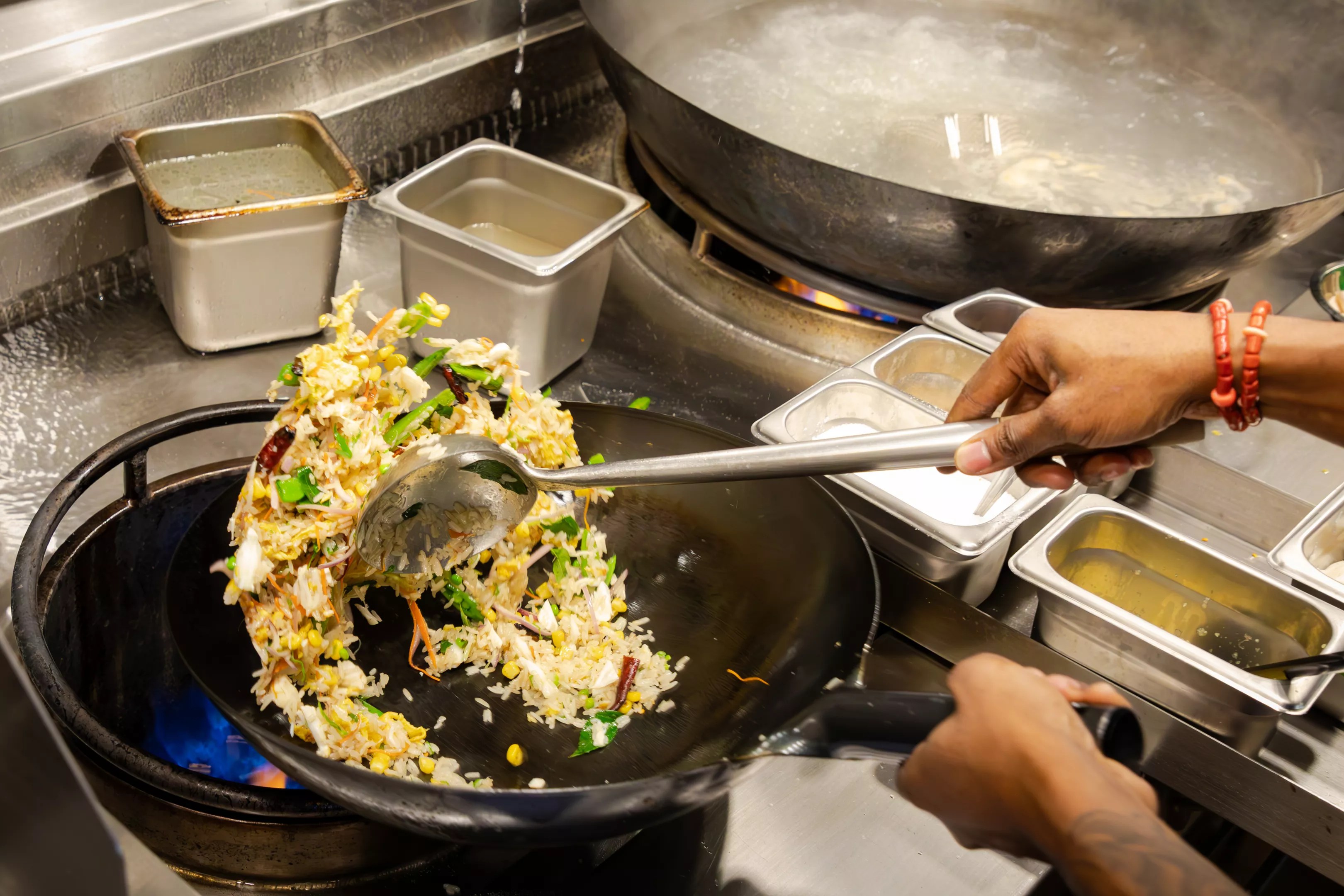 Wok station chef Ed Harris cooks crab fried rice at Kembara.