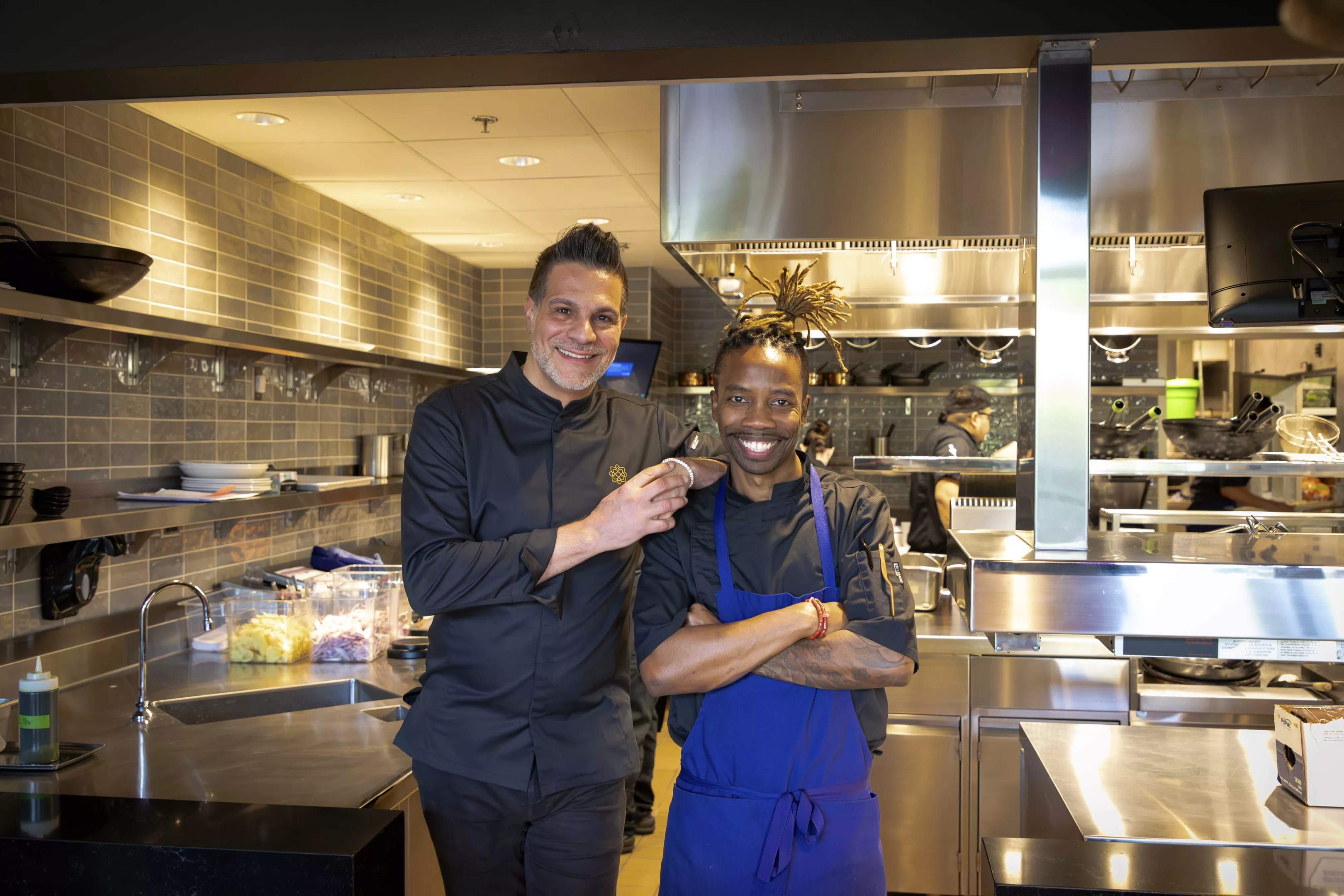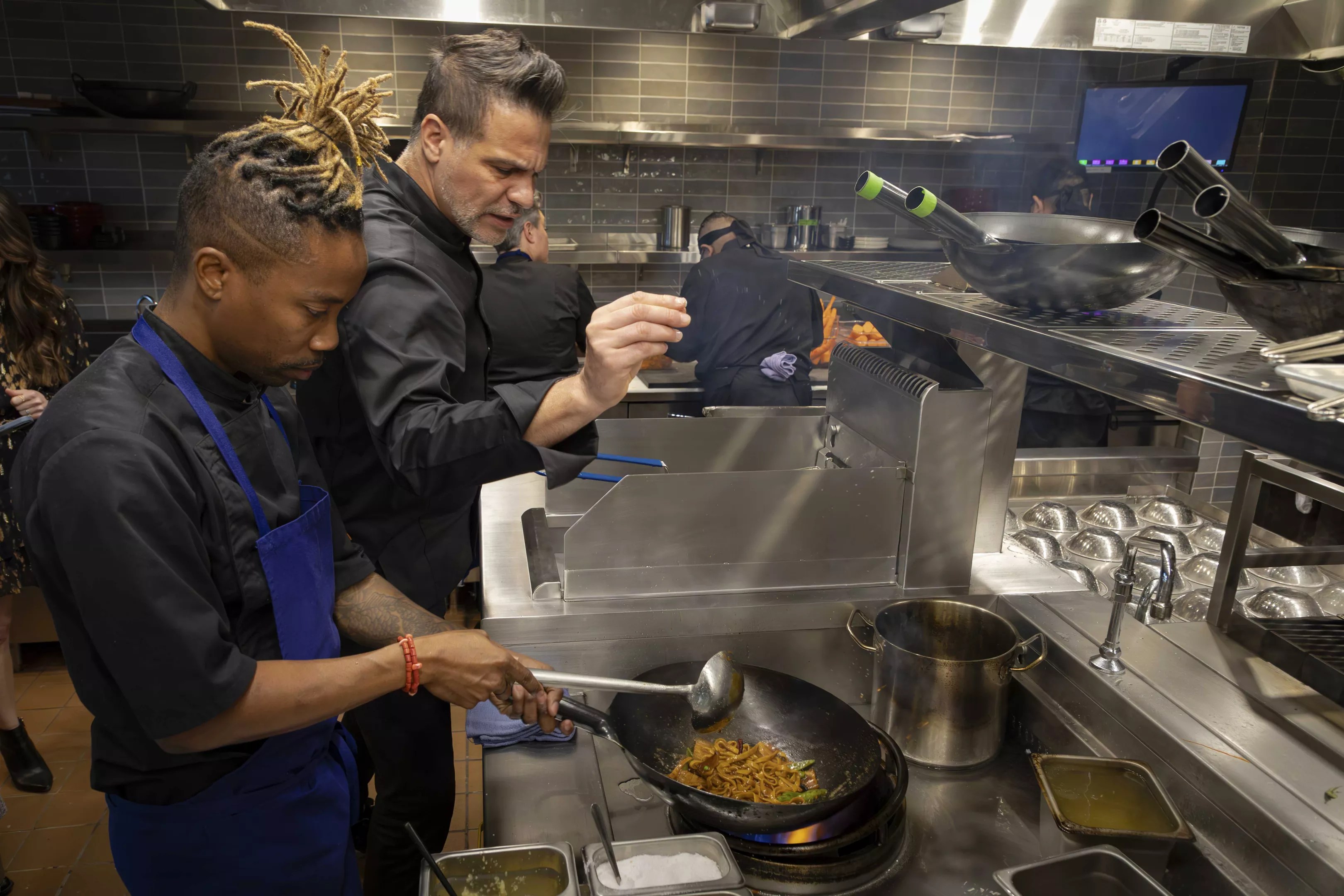 Chefs Angelo Sosa and Ed Harris cook handmade noodles at Kembara.