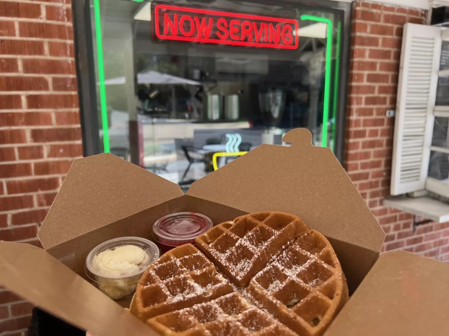 Made-from-scratch waffles are available at Bang Bang Coffee.