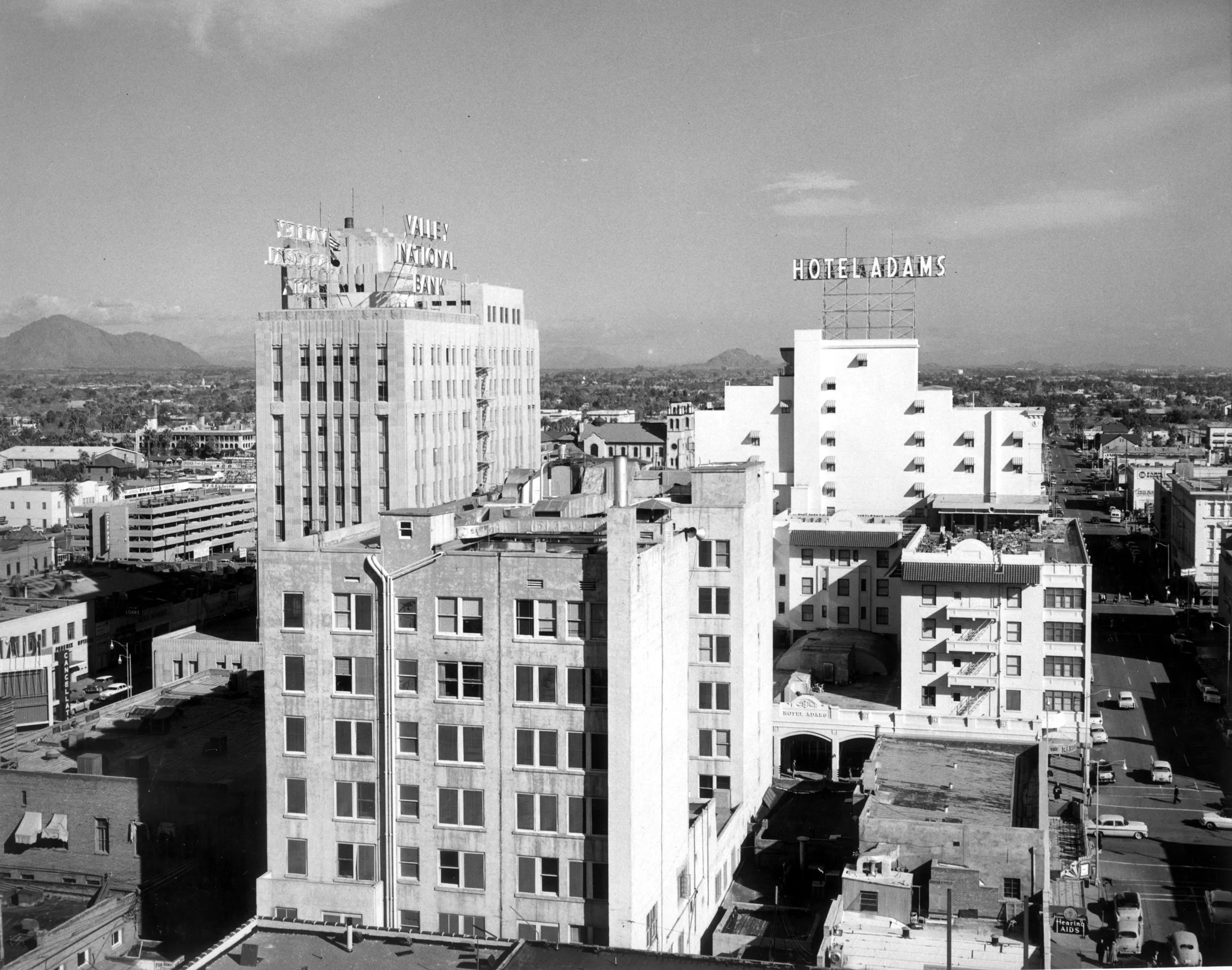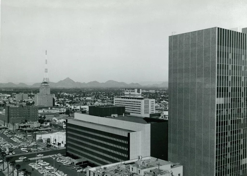 This photo, taken in 1969, shows the Westward Ho as well as the First National Bank of Arizona, the light-colored building with lettering on top in the center of the frame. That building now houses Arizona State University’s downtown University Center.