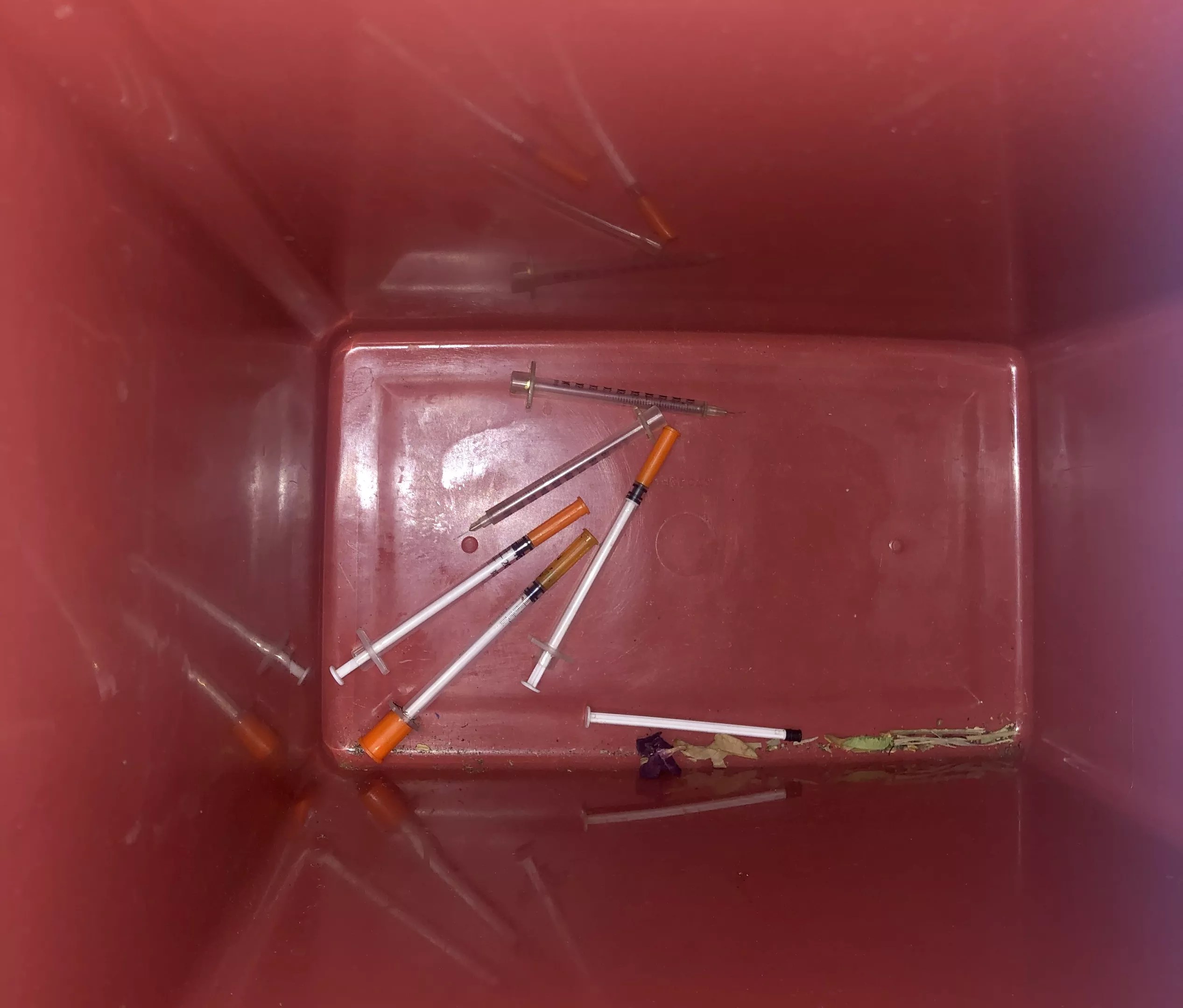 But inevitably, some sharps end up getting reused, shared, or dumped in the bushes. And the ones that do get thrown away, though out of public view, can still poke waste management employees, police, or curious kids that get too close to the garbage the next morning.