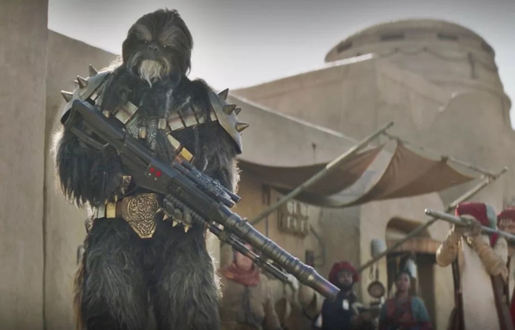 Carey Jones at Krrsantan from The Book of Boba Fett.