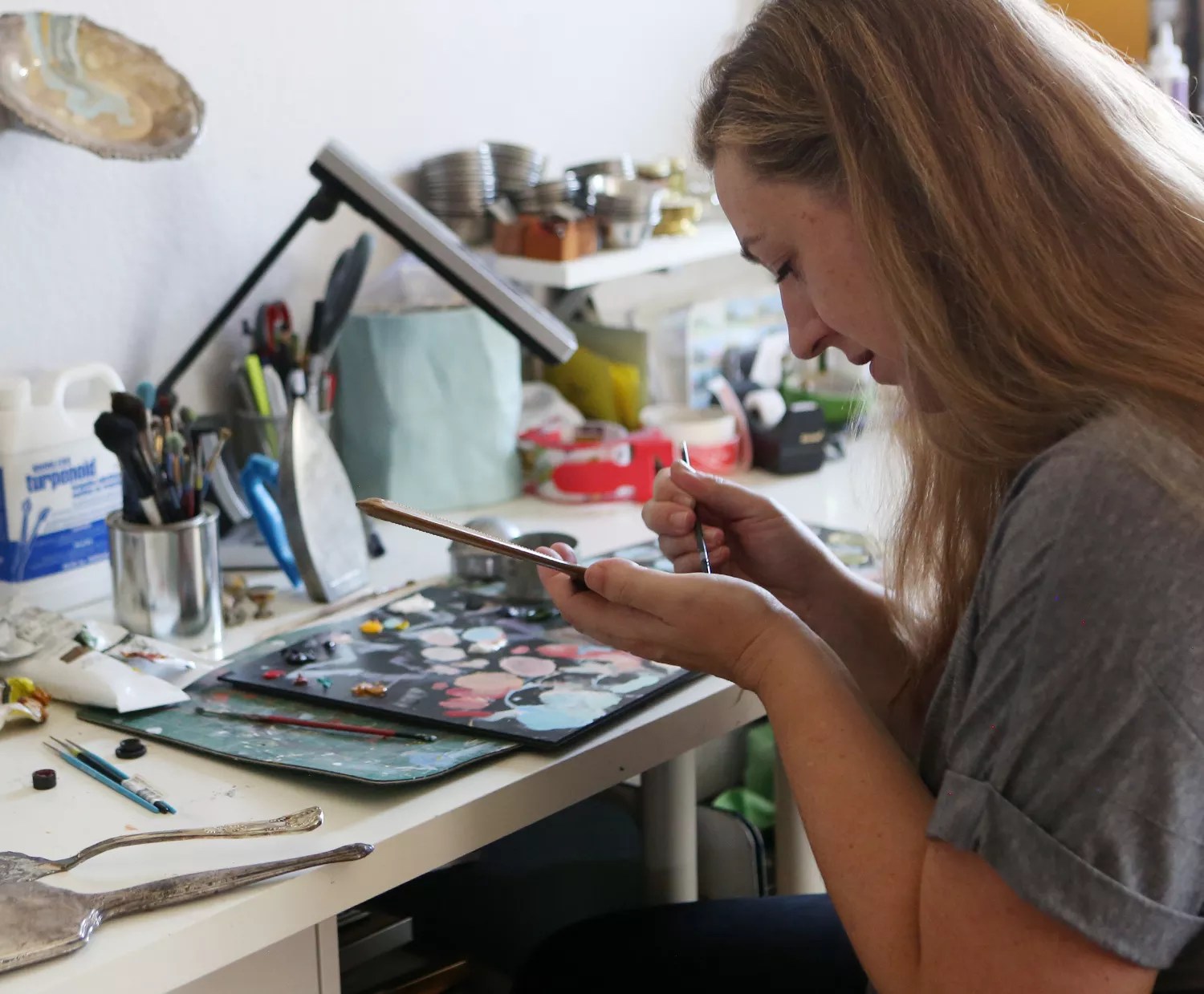 Learn to create oil paintings on found silver objects with Phoenix artist Laura Spalding Best, during a workshop at Practical Art, where her “Vanity” exhibit continues through the end of August. The workshop takes place from 2 to 4 p.m. on Saturday, August 25. The cost is $30, which includes supplies. Learn more on the Practical Art website.