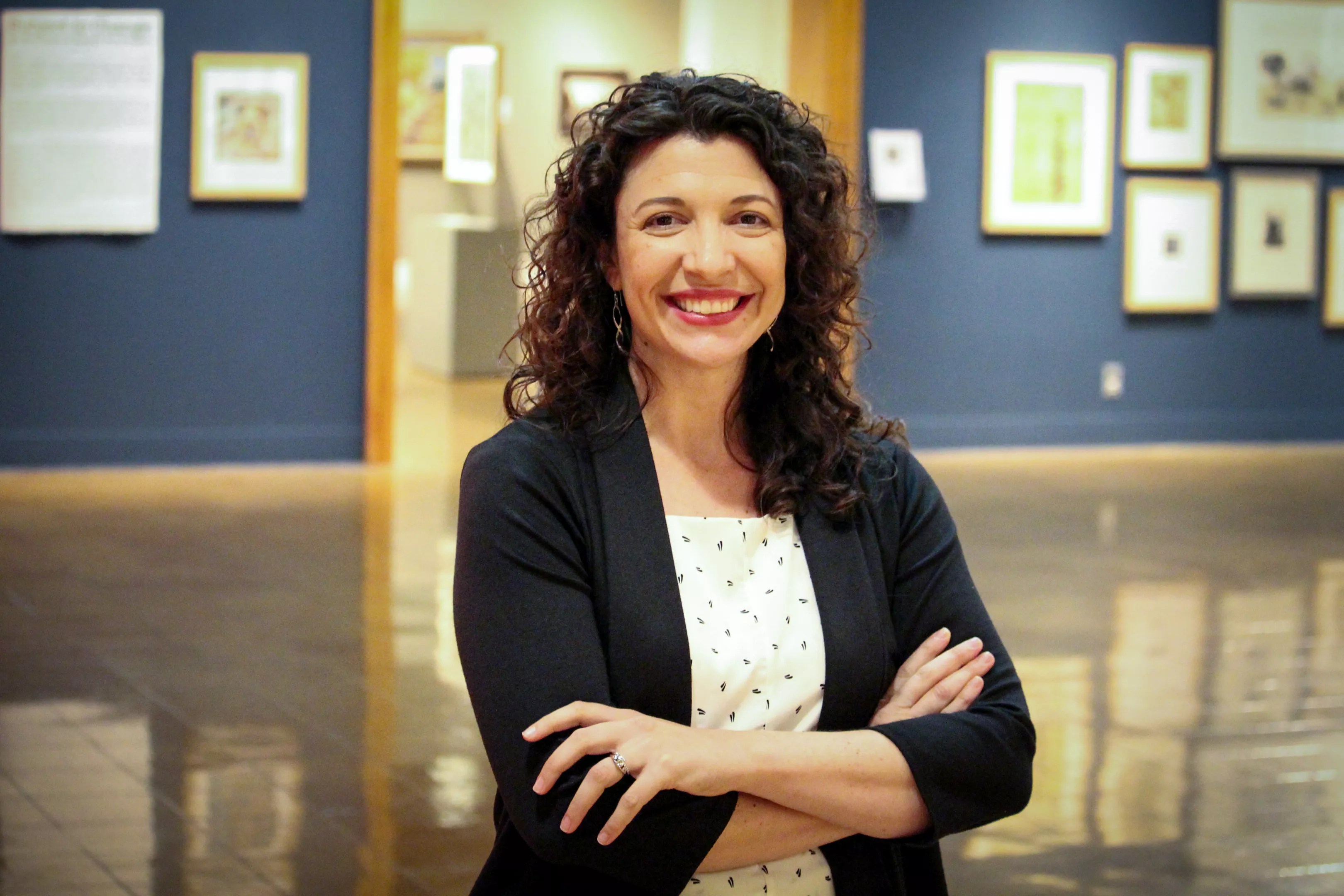 Chief curator Tiffany Fairall with a previous exhibit inside one of several museum galleries.