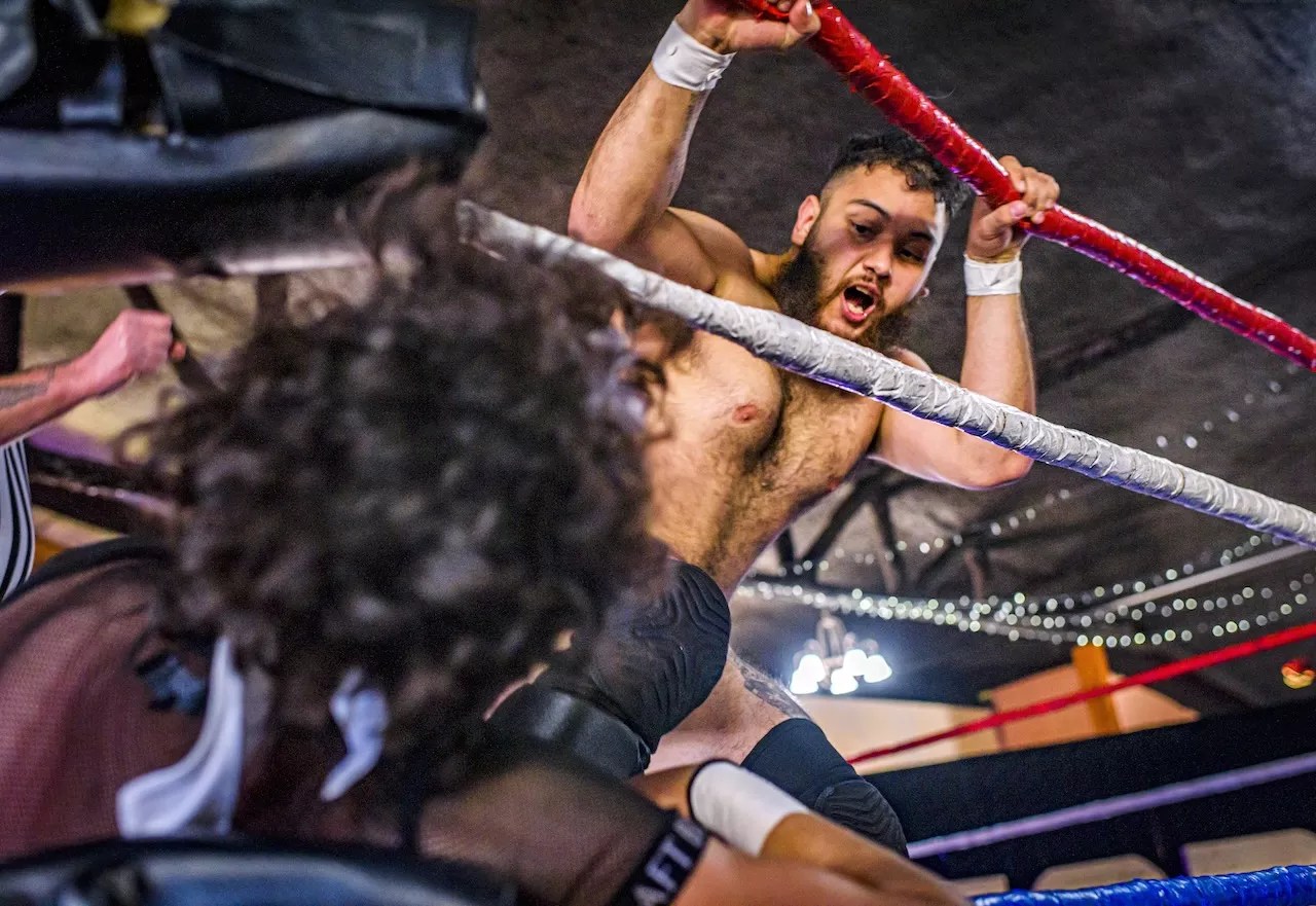 Wrestlers compete during a Wrestle Drag match on Sunday.