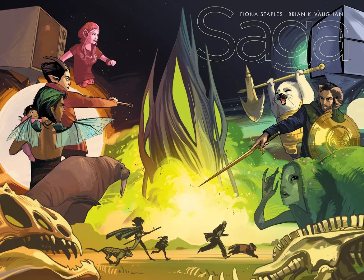 The story includes many unforgettable anthropomorphic characters, including the fan favorite Lying Cat who only says the phrase “LYING” whenever a character, uh, ahem, lies. Then there’s Ghüs, the adorable humanoid seal in overalls, willing to defend his friends with his trusty battle ax. Both became loved after their first appearances and earned more time in the book. And that’s one of Saga‘s best traits: how the creators engage with fan response and reward them for their enthusiasm, even if they occasionally break a few hearts along the way.