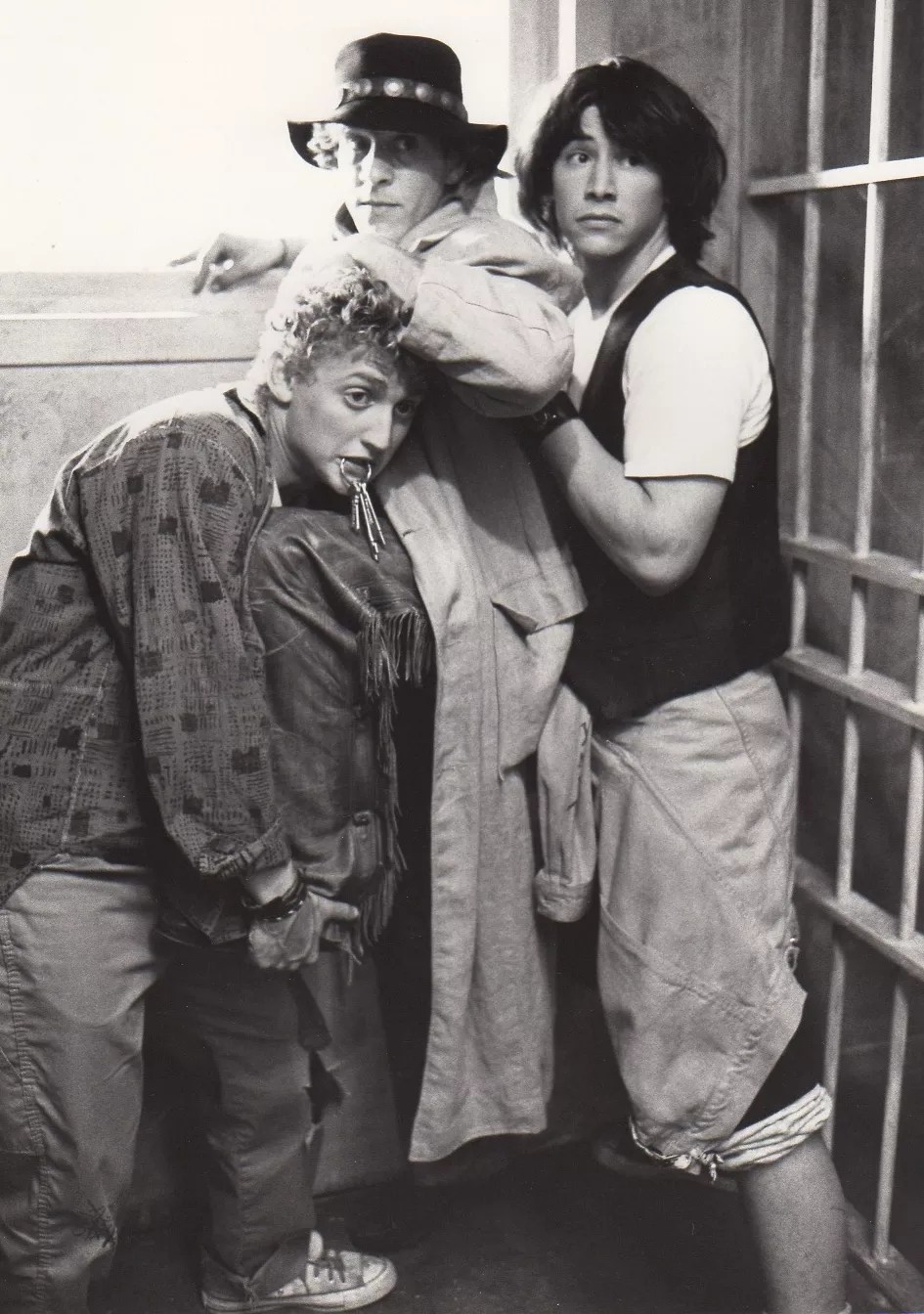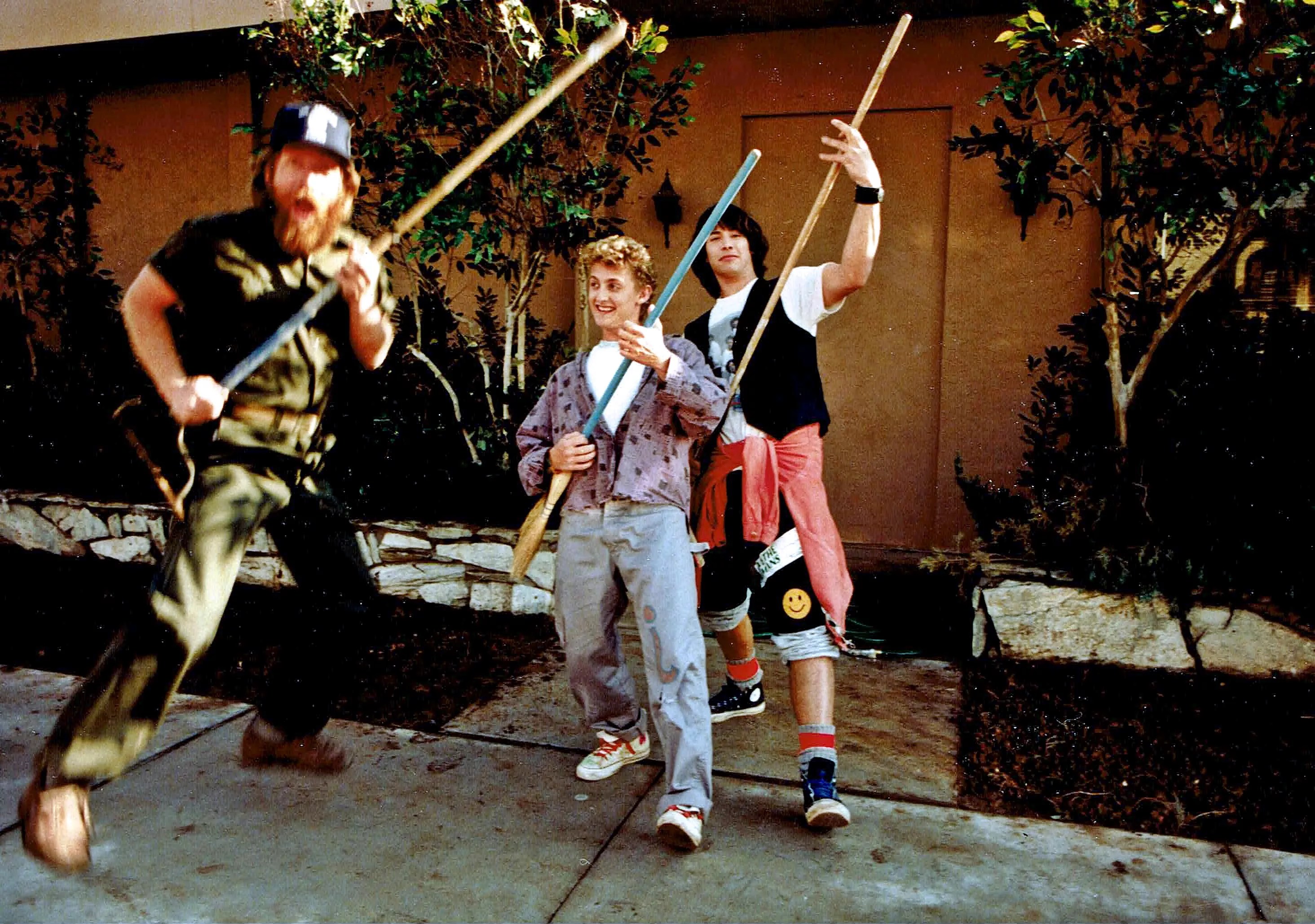 The primary cast of “Bill & Ted’s Excellent Adventure” at a photo shoot in Phoenix during filming in 1987.