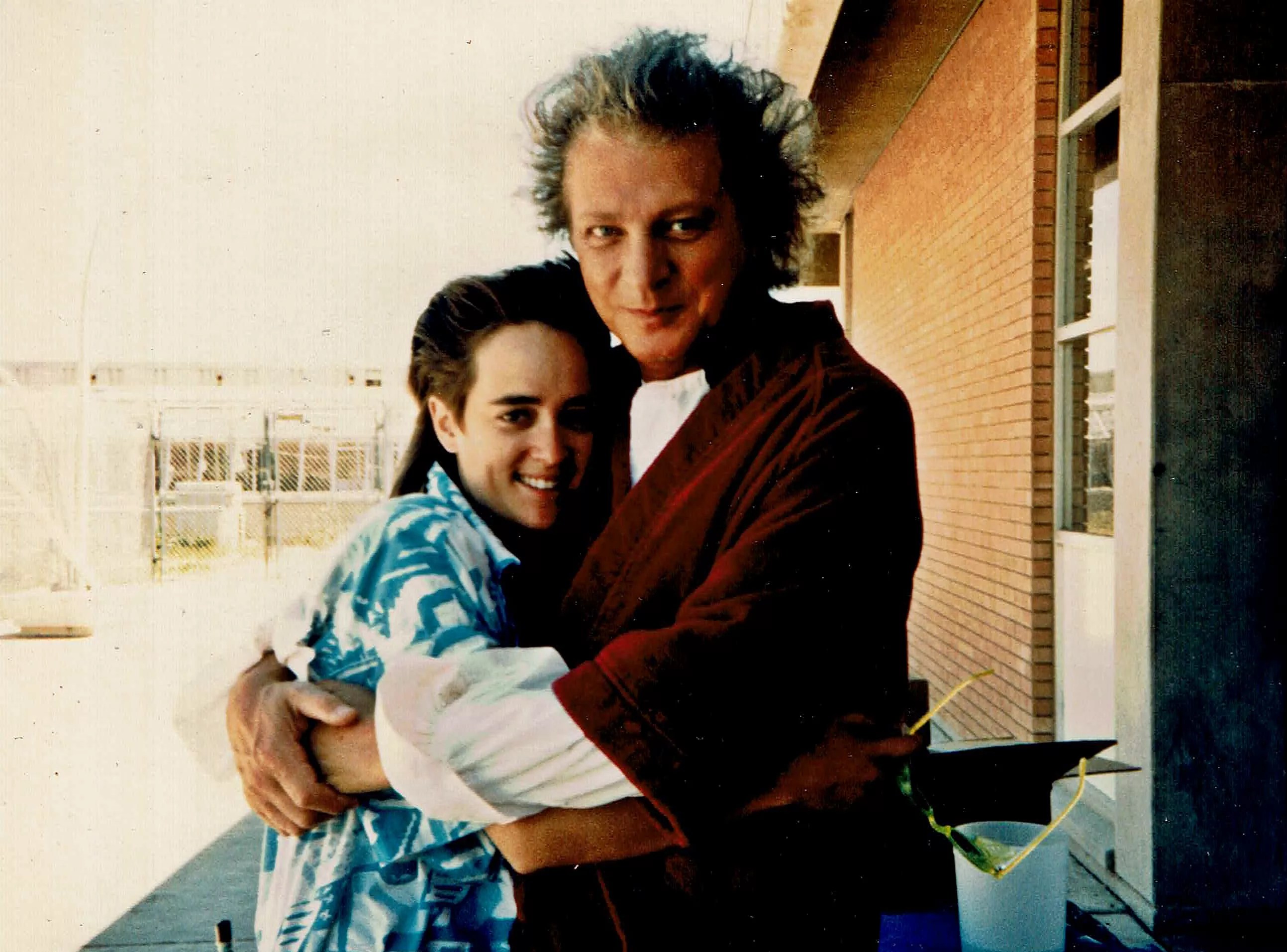 Alex Winter (right) with Joan of Arc actress Jane Wiedlin (left) during the filming of “Bill & Ted’s Excellent Adventure” at the now-demolished East High School in Phoenix.