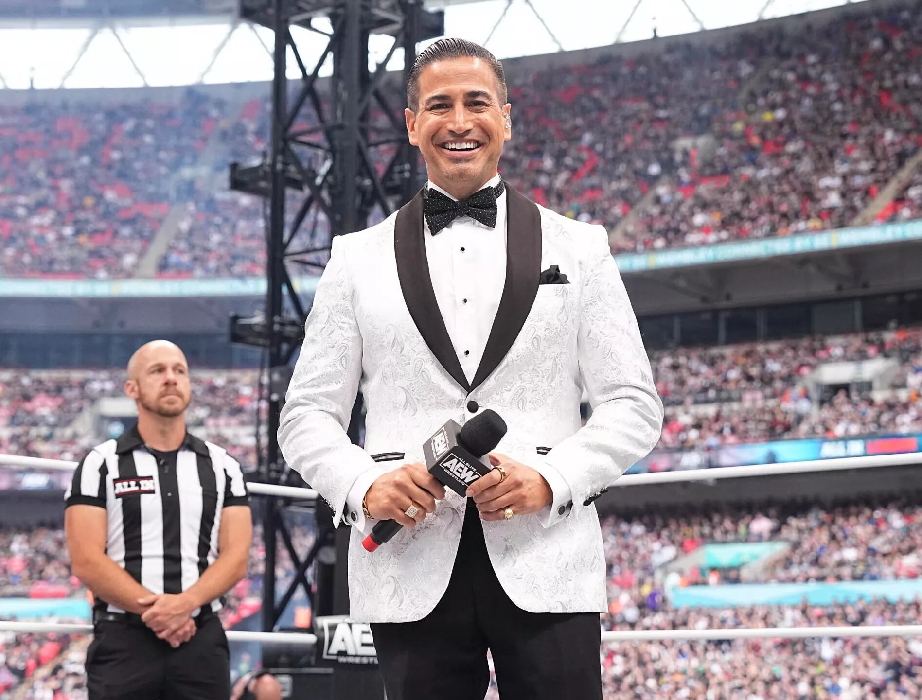 Justin Roberts announced before more than 84,000 fans at Wembley Stadium during AEW All In 2023.