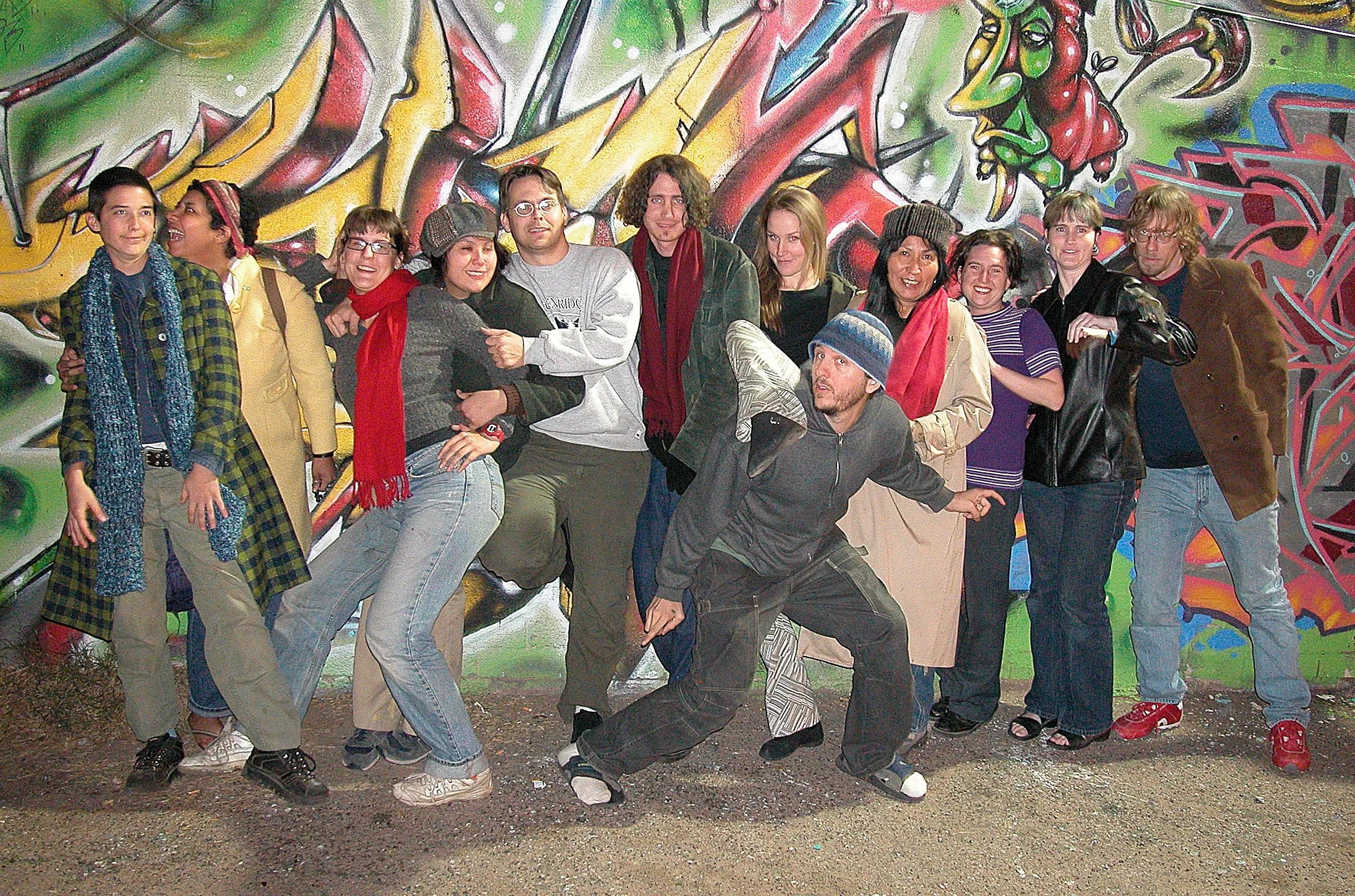Michael 23 (crouching at center-right) in a 2005 photo with fellow members of the Thought Crime collective.
