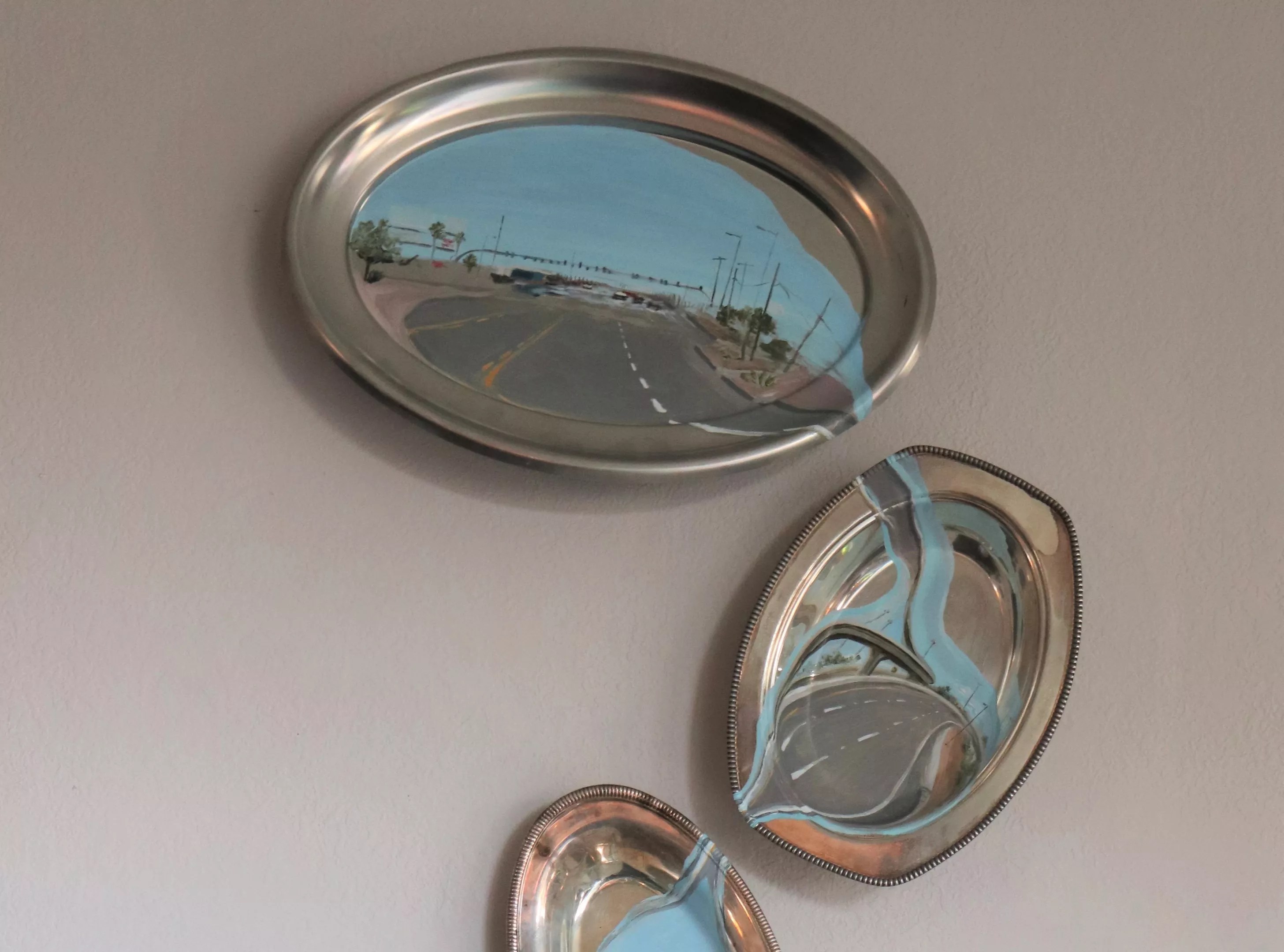 The exhibition also includes three works by Laura Spalding Best, whose “Inferior Mirage” exhibition at Chartreuse was one of 2016’s best. Best creates oil paintings on found objects, including silver trays. Often, they reference real or imagined urban landscapes, much like her murals located in Roosevelt Row and on Grand Avenue.