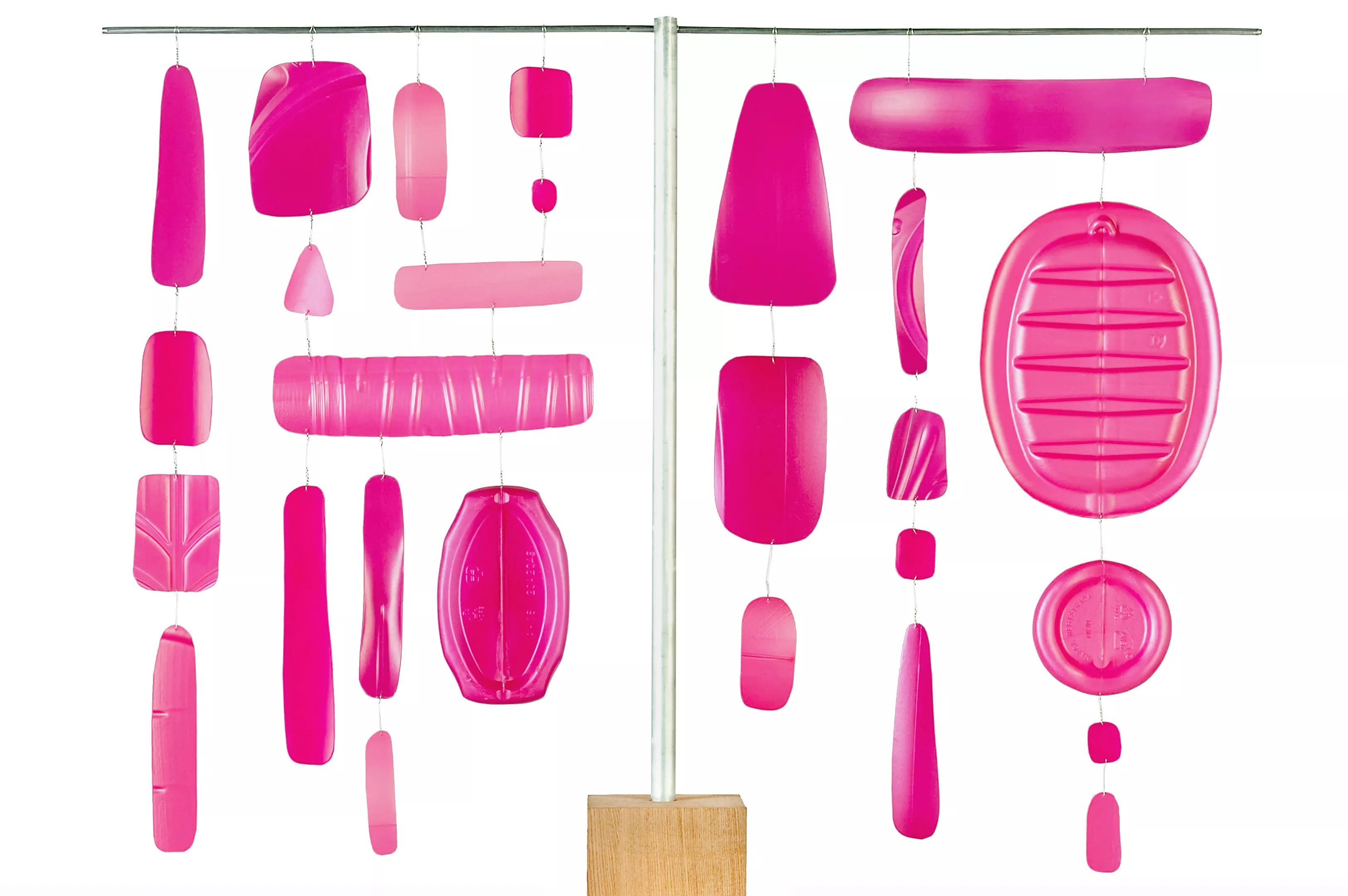 The 2018 Contemporary Forum exhibit includes nearly two dozen works by Magee, including several oil paintings on panels, as well as sculptures made with wire, and forms created from detergent bottles. One work, titled Prima Materia, comprises dozens of objects he’s gathered since 1981.
