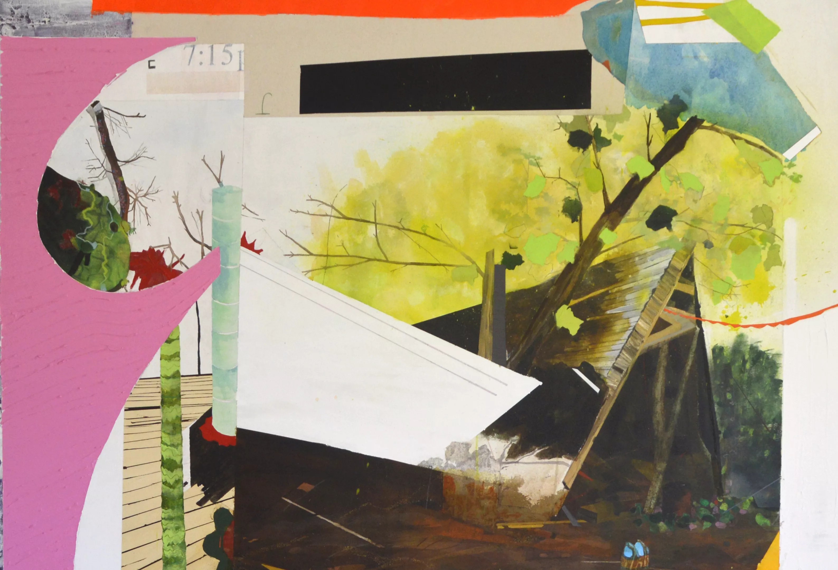 Laura Spalding Best’s 2018 oil on found objects Tributary I .