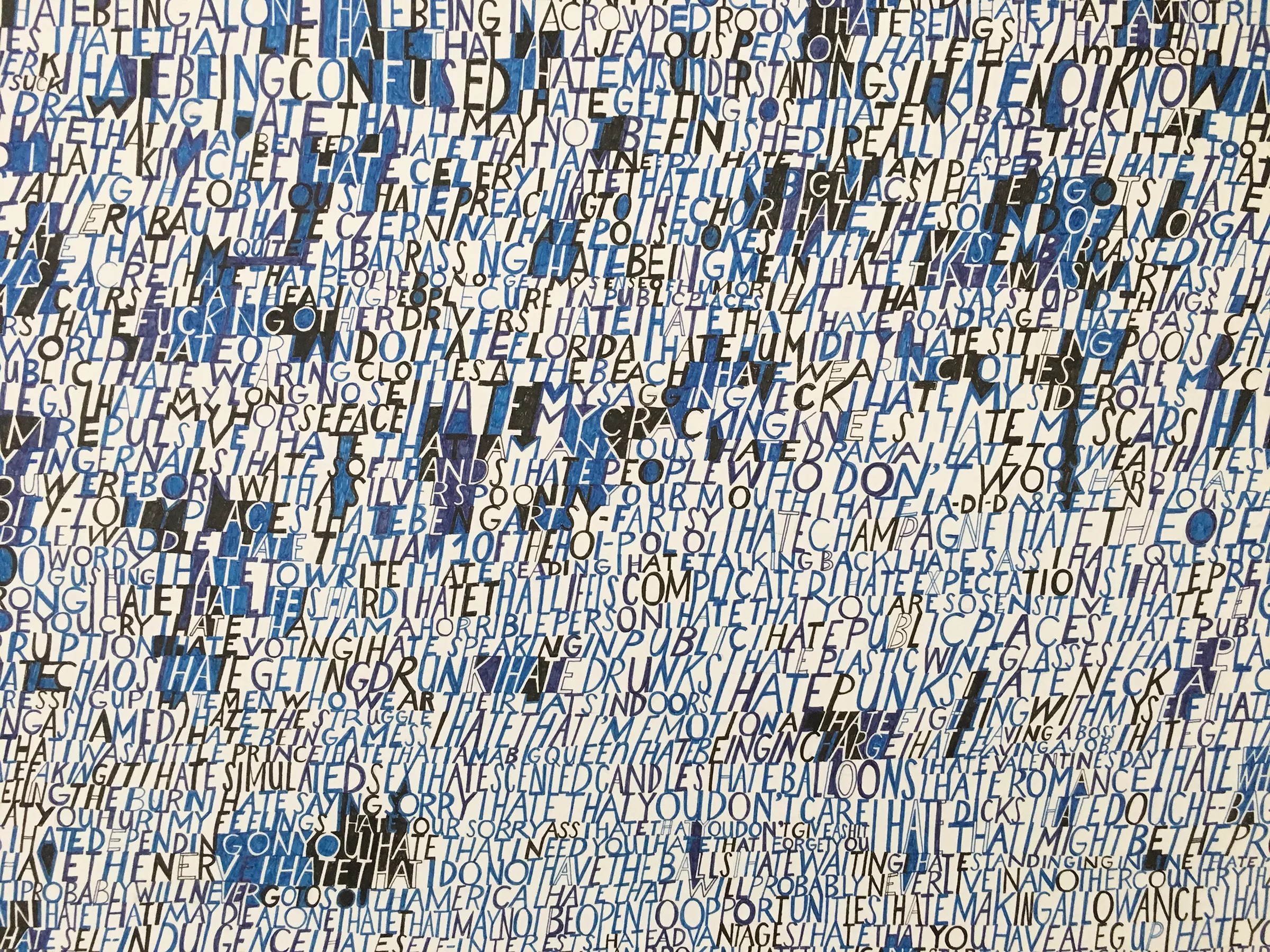 Chris Jagmin’s I Hate Everything, 2018, micron pen and graphite on paper.