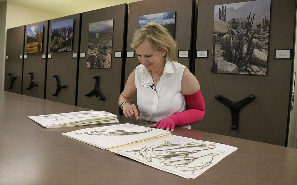 Chief Science Officer Kimberlie McCue stands in the Desert Botanical Garden’s herbarium with a collection of more than 100,000 specimens. The storage seen in the background is the space-saver mobile system funded by IMLS.