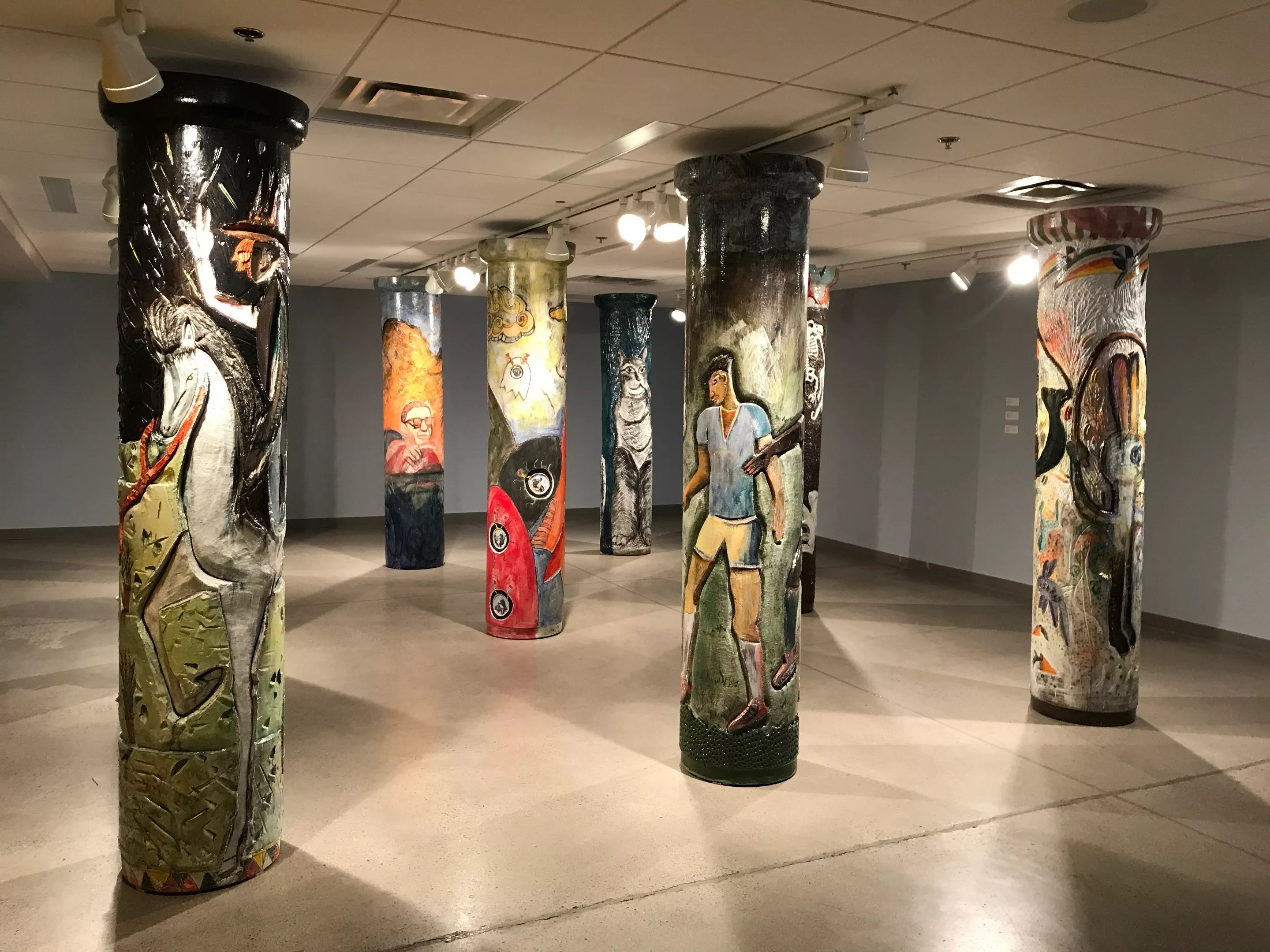 Their work is central to the exhibition, but four other artists have work in the show. So four additional columns, which vary in size, dot other parts of the gallery space.