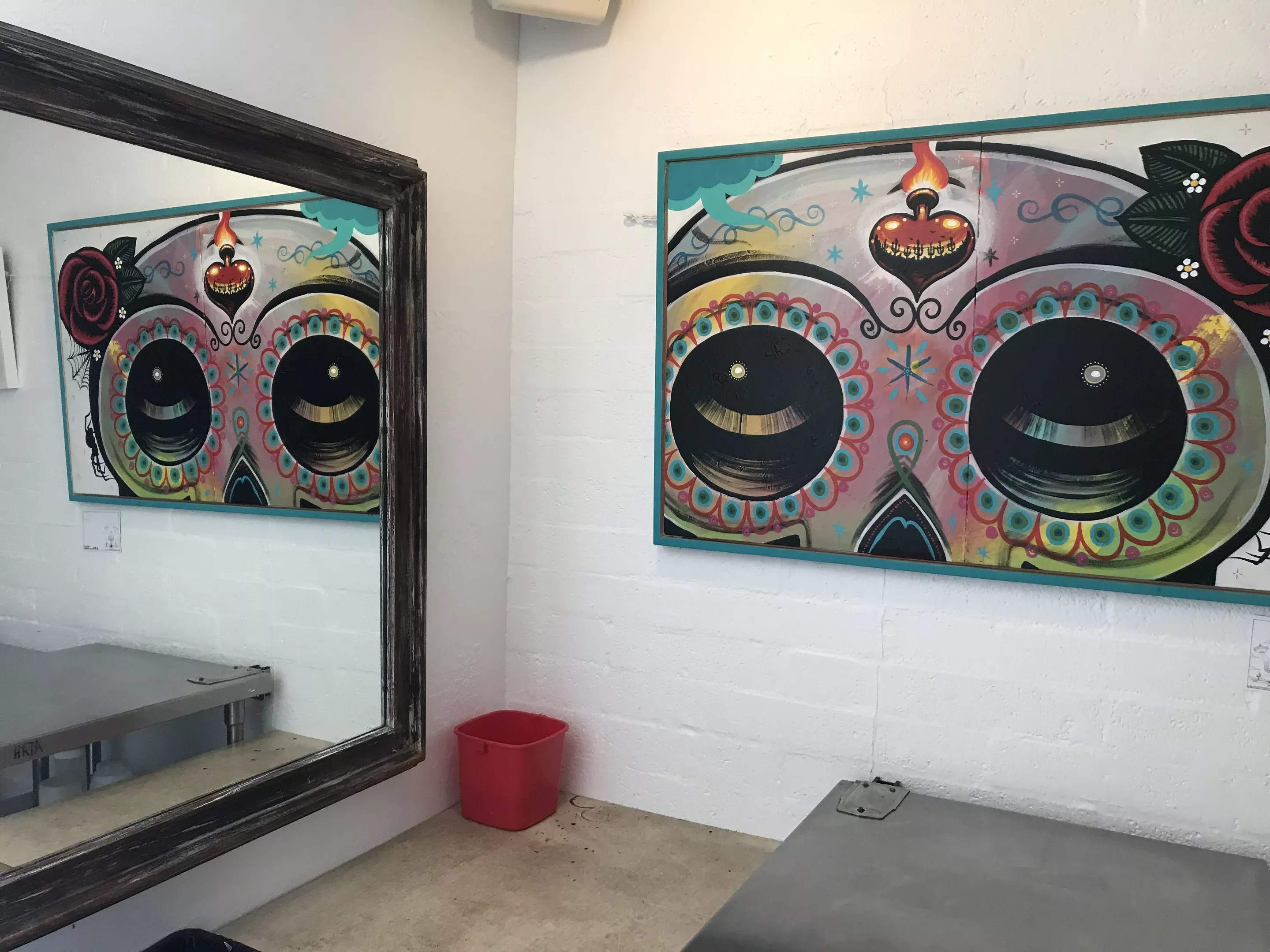 But one thing hasn’t changed: Barrio Café is still filled with art. Cota’s paintings, which feature his iconic imagery of skeleton figures and cars, dot the restaurant’s white walls – and works by other artists abound as well. He’s envisioned creating an underwater scene inside the blue bathroom and incorporating imagery that reflects Esparza’s love for lowriders.