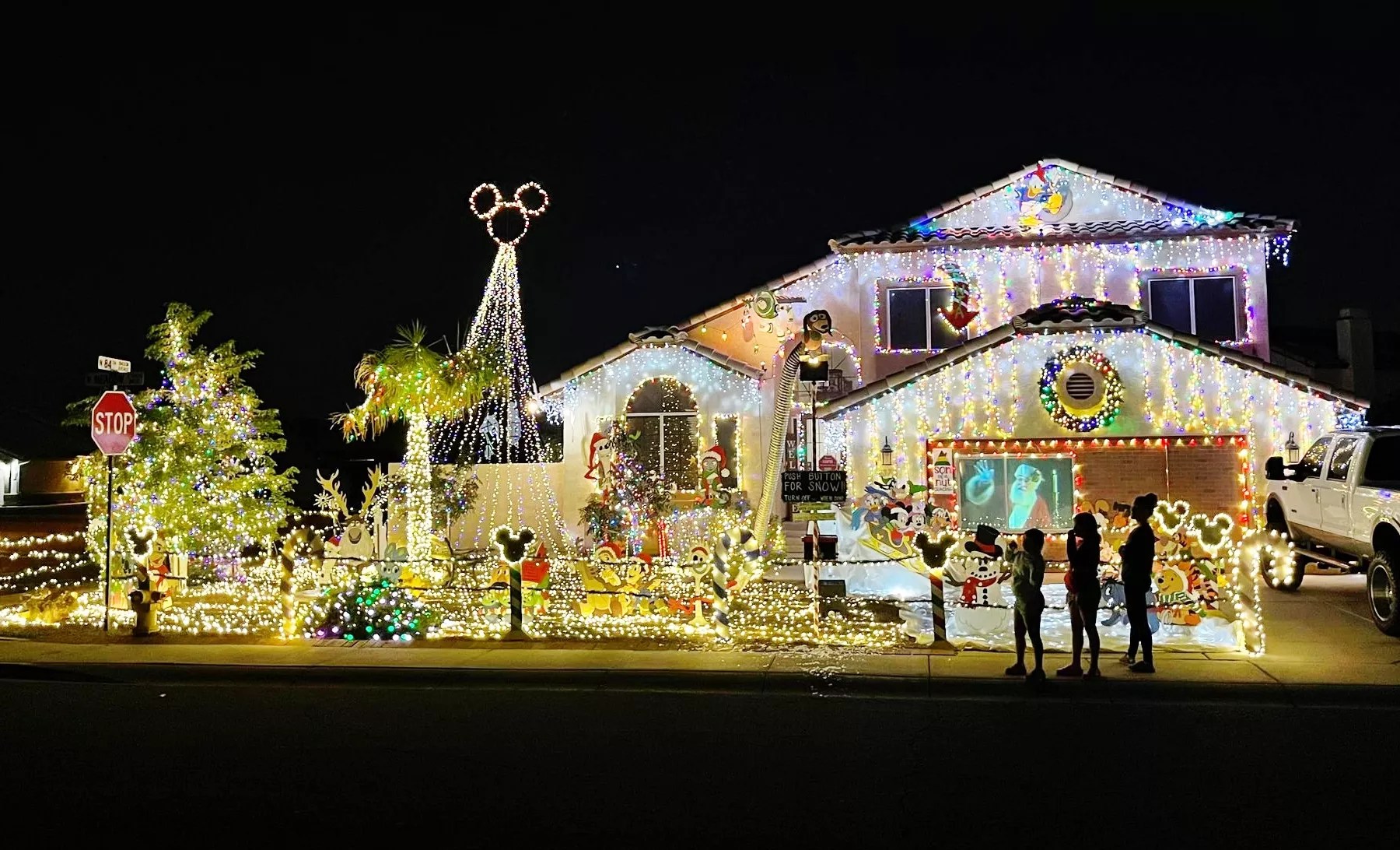 11161 E. Starkey Ave., MesaSelf-described Disney nerds and Mesa residents Mike and Stacie Parsons build a large structure resembling the facade of “It’s a Small World,” right down to the signature clock face, outside their home each year. After dark, it comes alive with color during computerized light shows that are wired up to glowing displays on multiple neighboring houses. Your kiddos will also dig a snow machine that shoots faux flakes into the air or a mailbox where they can drop letters to Santa and get a personalized letter in return. Like anything Disney-related, it’s a bit magical. Hours: Runs 5:30 to 9 p.m., Sunday through Thursday; and 5:30 to 10 p.m., Saturday and Sunday.