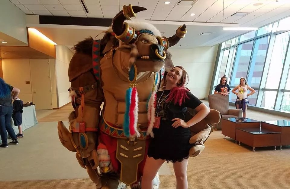 The Blue Ribbon Army’s Jen Hinds poses with the Tauren Chieftan at Phoenix Comicon.