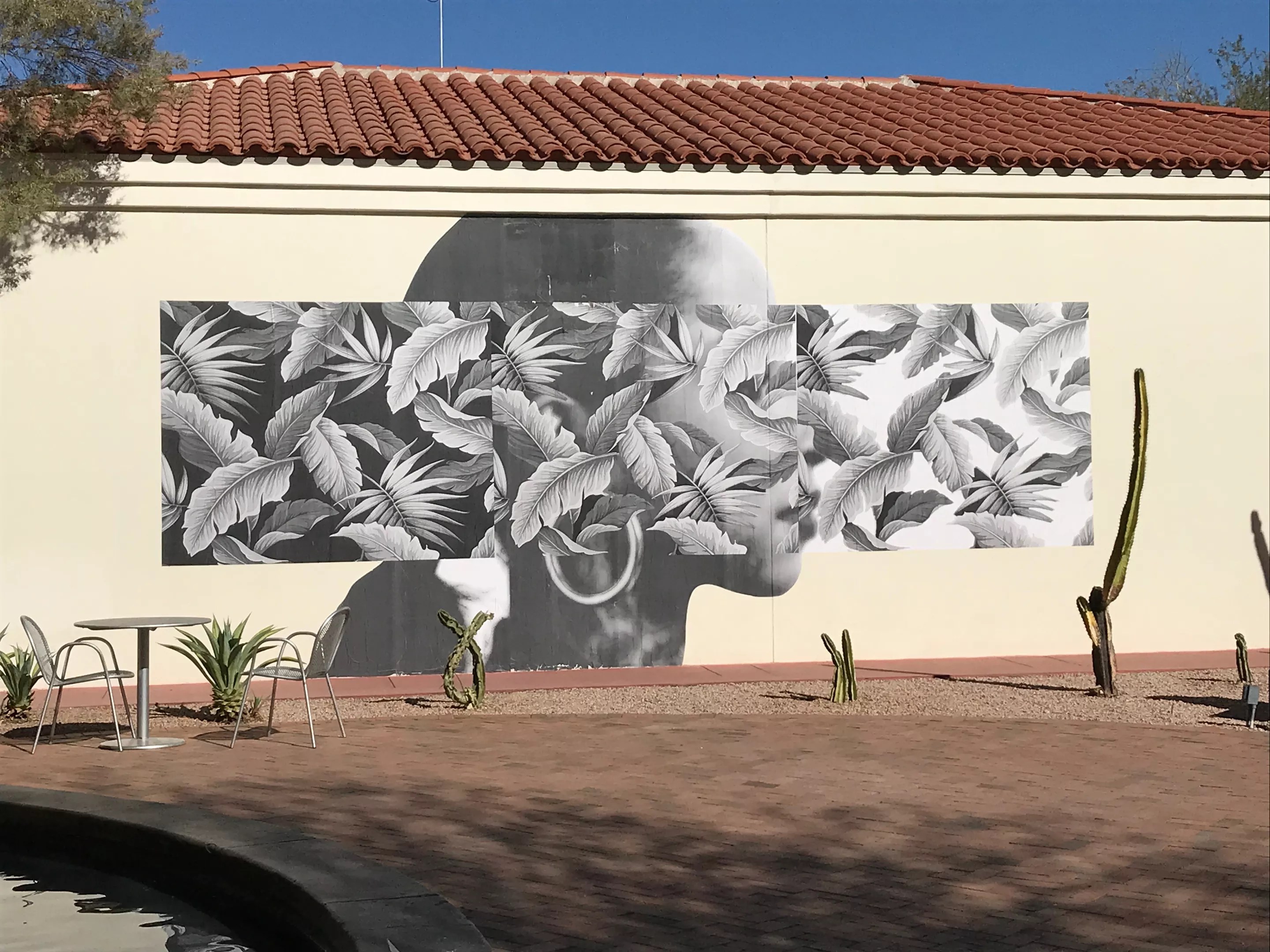 Cheyenne Randall mural located in a courtyard near the entrance to the Heard Museum.