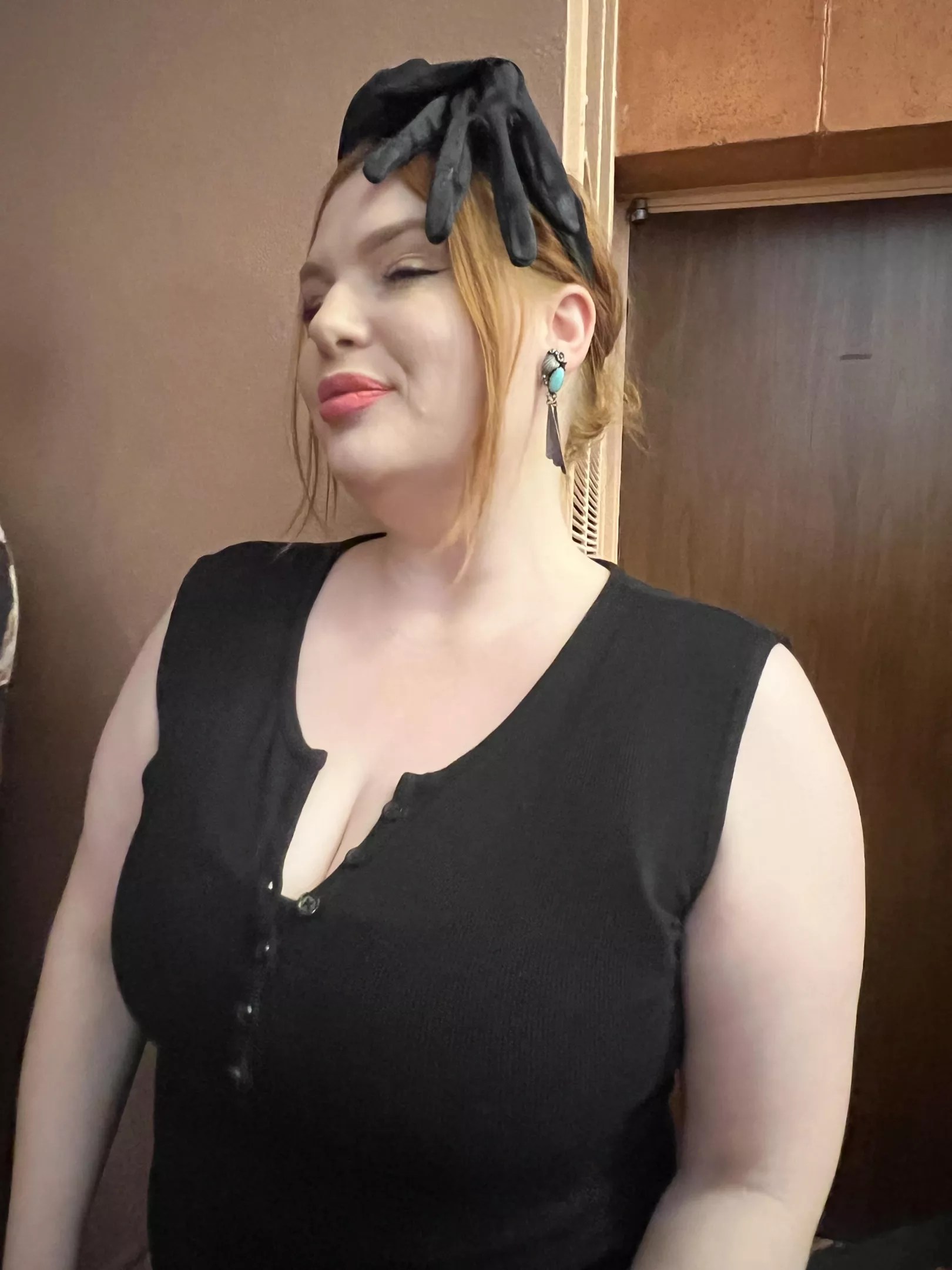 This theatergoer was inspired by Delia’s glove hairpiece in the movie.