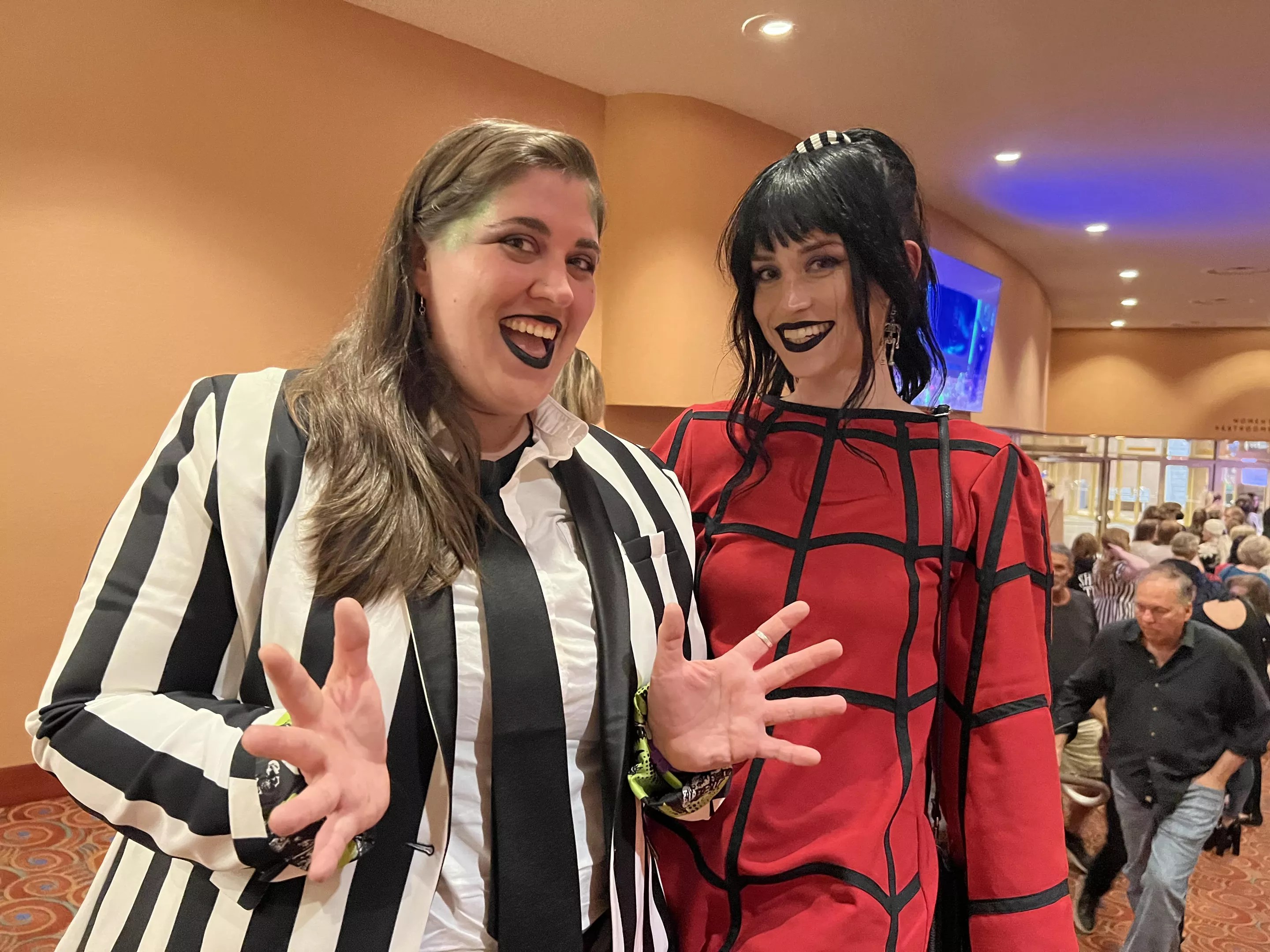 Matching Beetlejuice pajamas make for a comfortable theater experience.