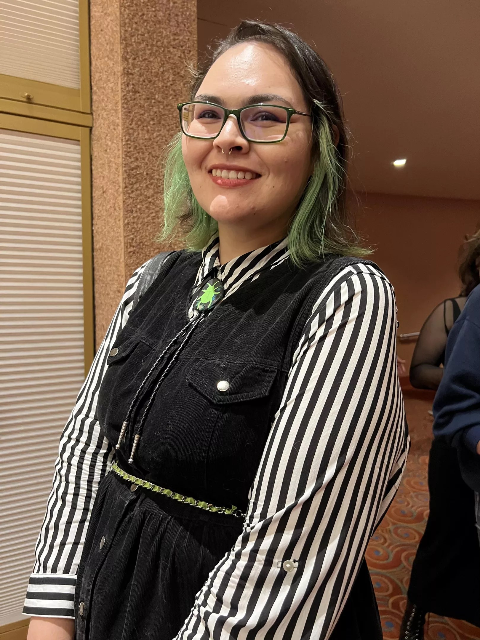 Black-and-white stripes, green and purple were the colors of choice for many audience members. We also saw plenty of striped tops and subtle green accents even among the folks who didn’t dress up.