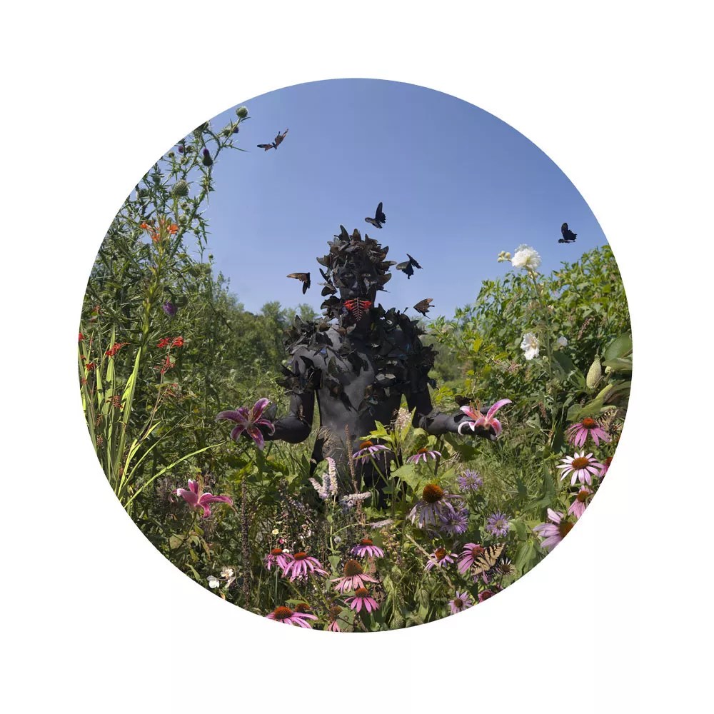 Kahn + Selesnick, Swallowtail Man, 2017, archival inkjet print, 24 inch diameter, mounted to plexi.