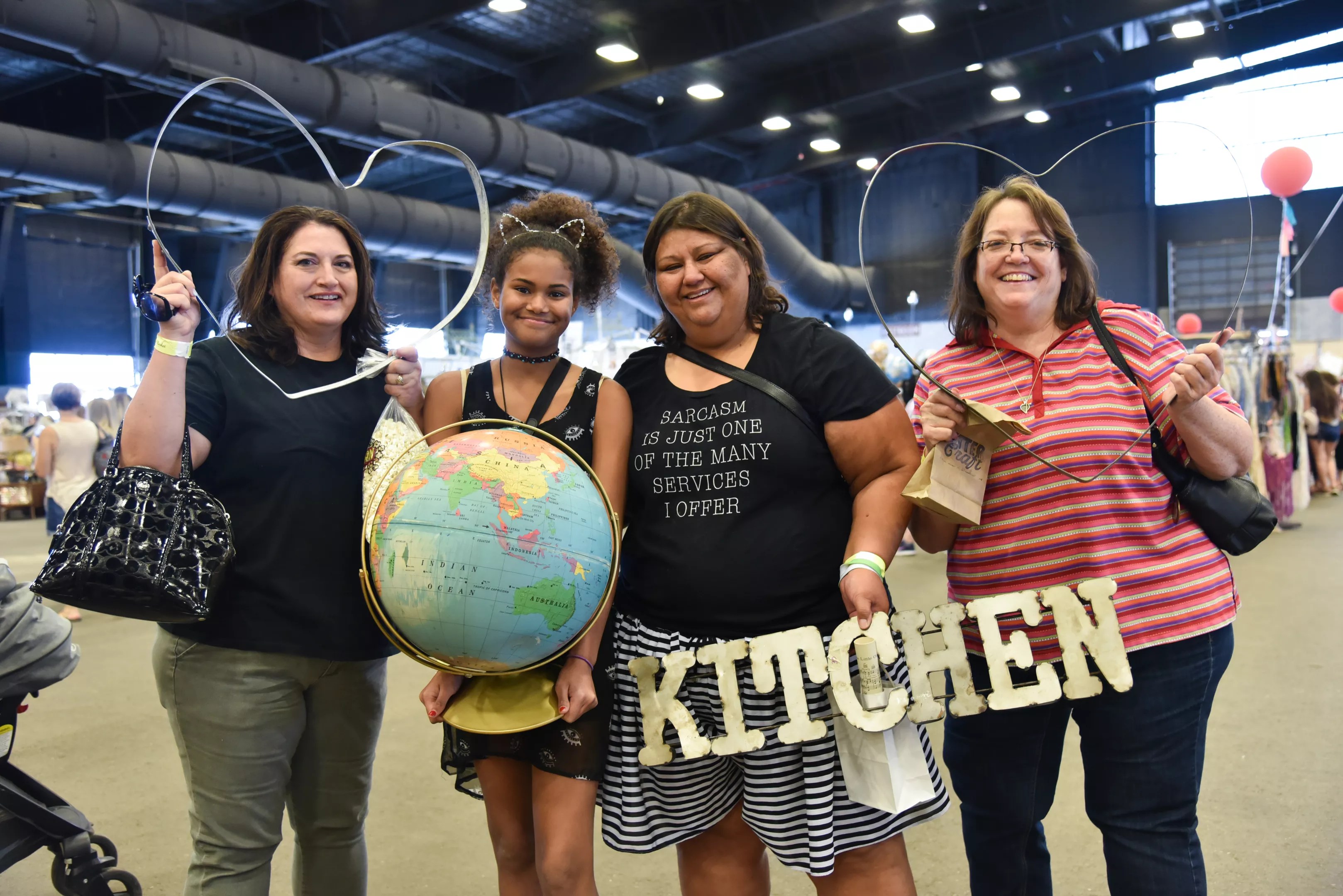 People show items they purchased from the Junk In The Trunk Vintage Market.