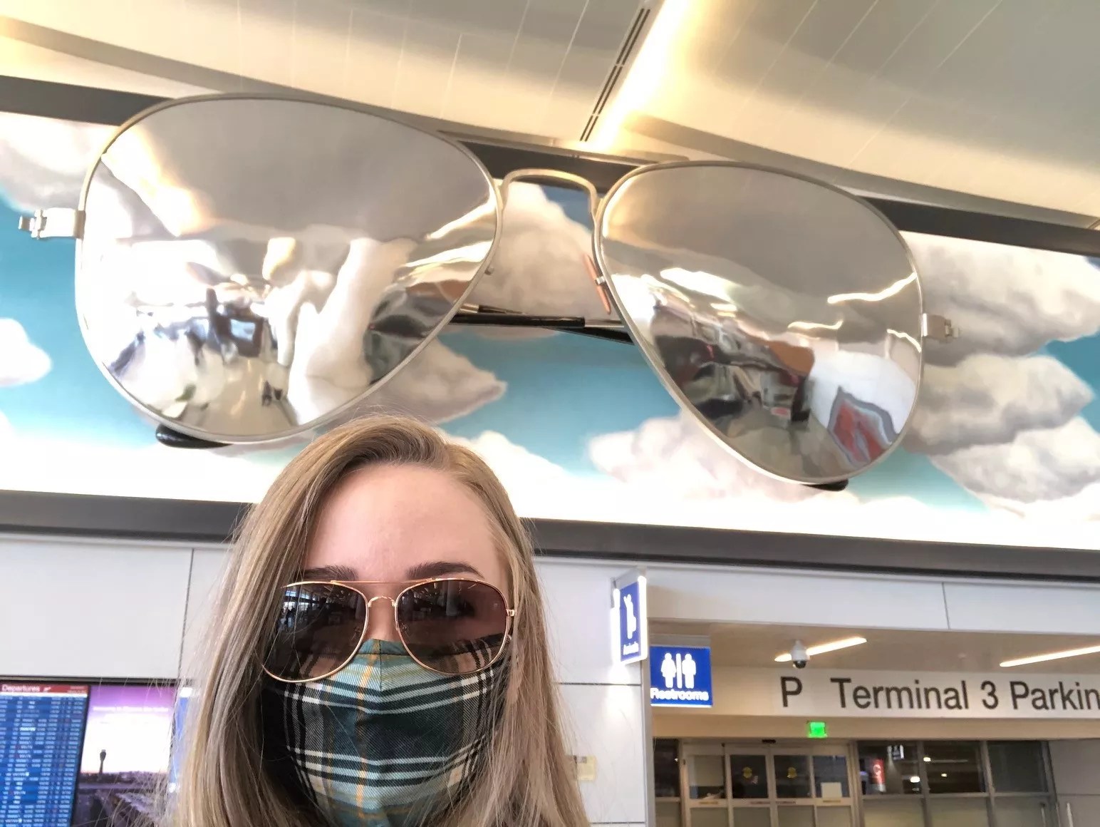 Haley Hinds mirrored the look of Donald Lipski’s aviator glasses artwork for this selfie.