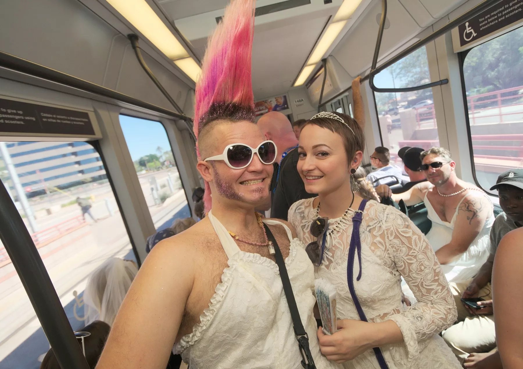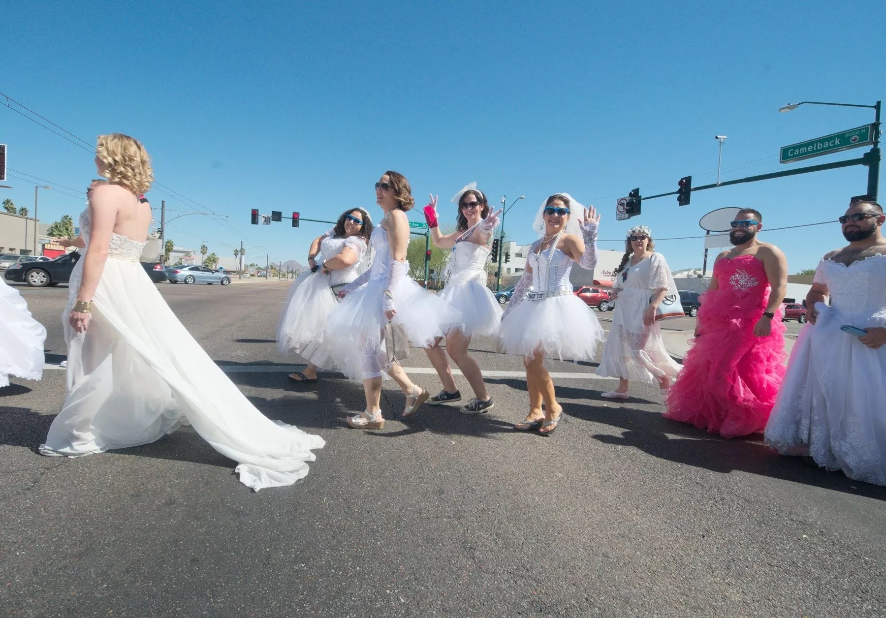 Equal parts costume bar crawl, urban prank, and gonzo free-for-fall, the annual event involves both men and women wearing wedding dresses as they drink their way across central and downtown Phoenix during a single afternoon.