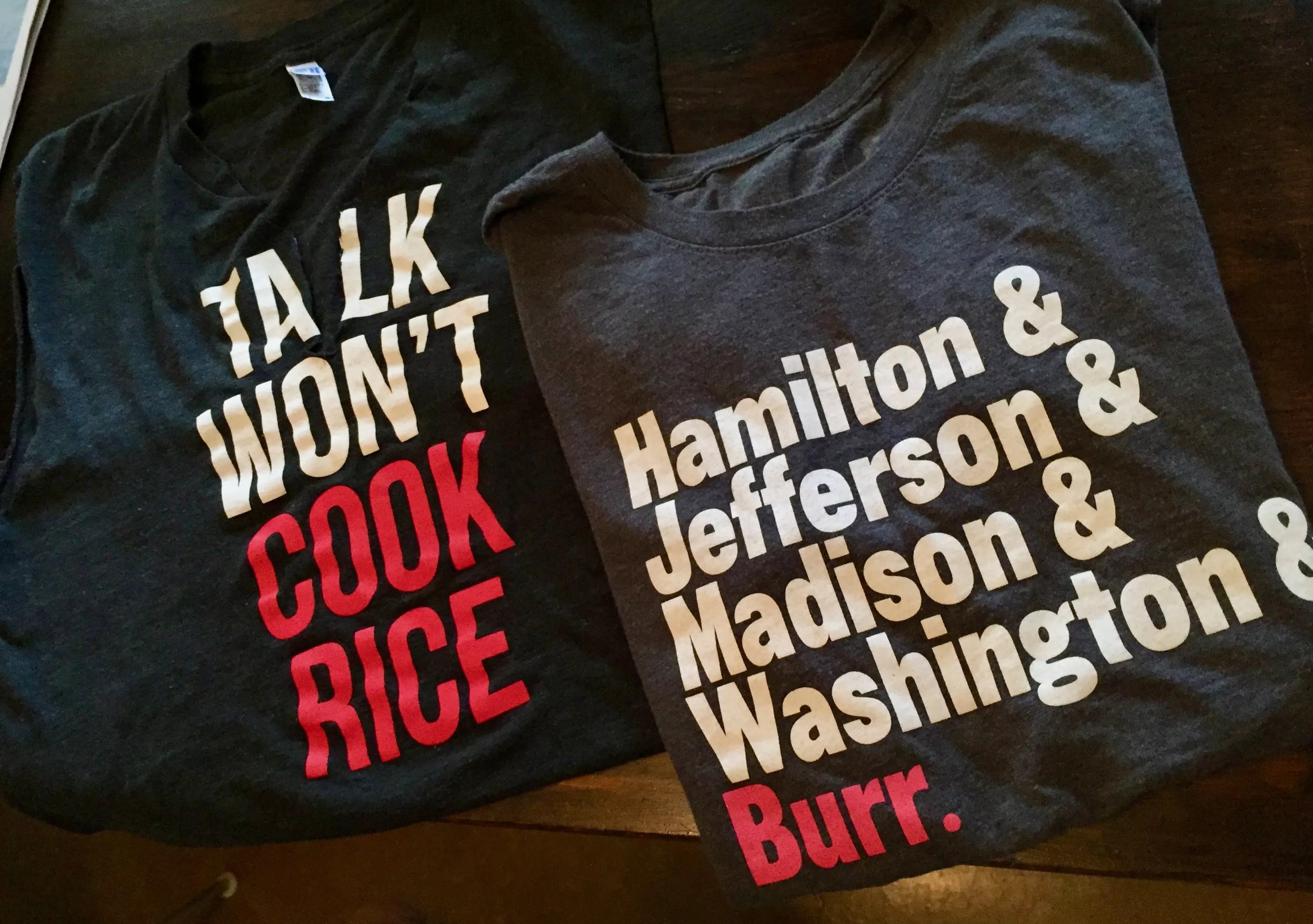 “This one is from Hamilton the musical, which I became obsessed with last year,” she says, pointing to the one on the right. She’s seen the original cast twice in New York, but now that it’s so popular, she’s a little over it.