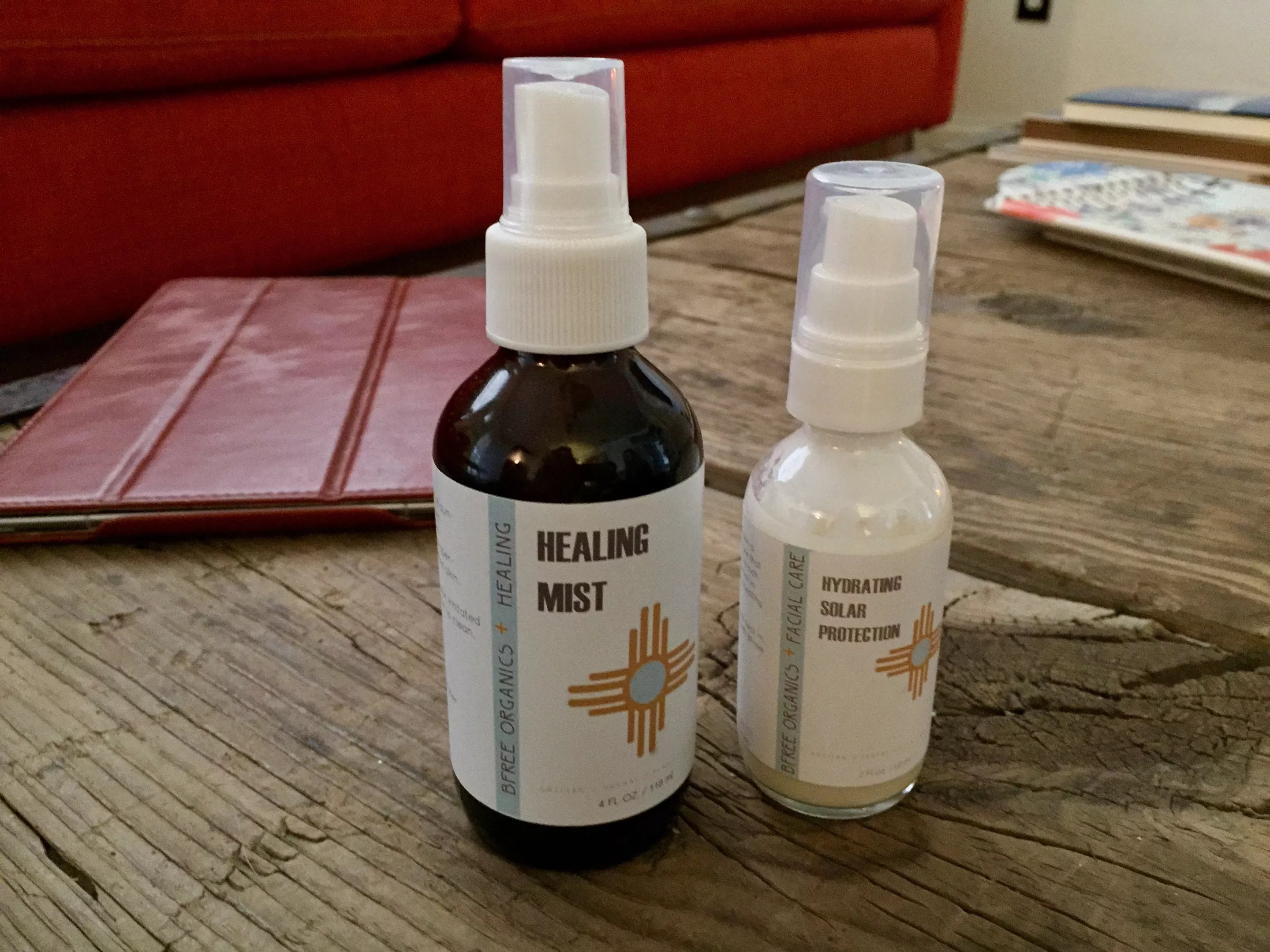 It’s Arizona, so BFree Organics Healing Mist and BFree Organics Hydrating Solar Protection are essential.