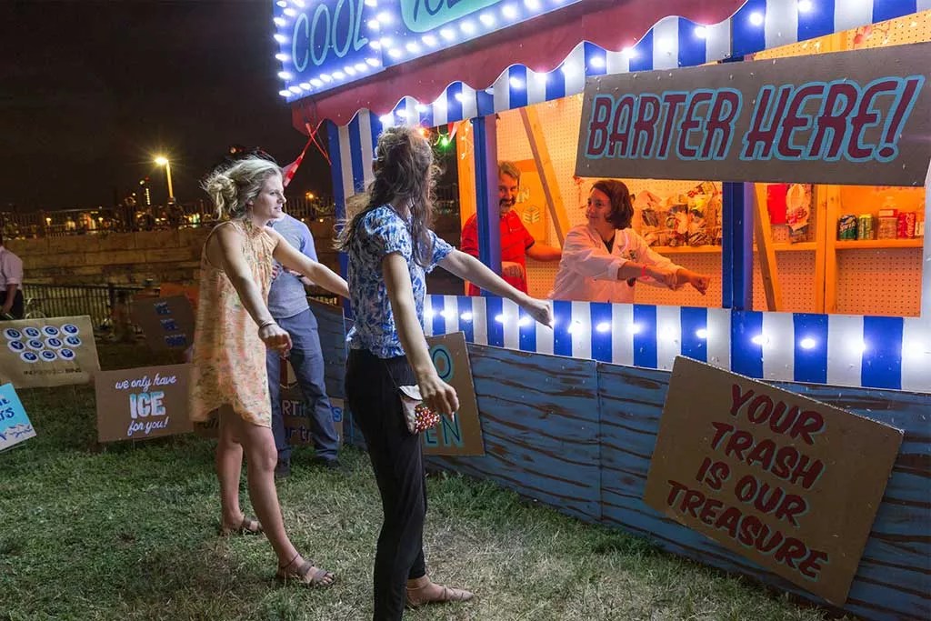 Hence the inclusion of an interactive art project called Barter Boat, which will barter with visitors for small objects, and deal in intangible items such as recordings of event performances. It’s the work of artist collective RADAR Art, which plans to package objects it acquires in Scottsdale for trade at its next destination.