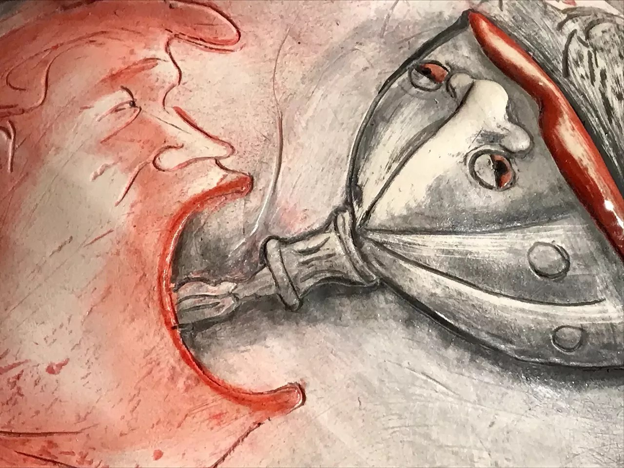 Checking out detail of a Patti Warashina piece previously shown at Mesa Contemporary Arts Museum.