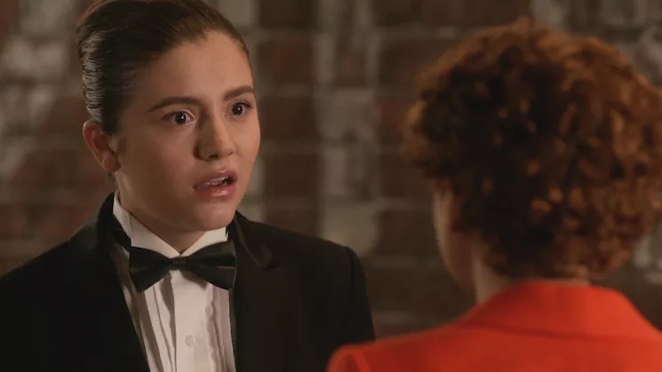 Rasha shows up to the wedding and sees Zoë, dressed in the tux with her hair slicked back. Her mom arrives and they go to greet her. She’s clearly stunned at both the tux and Rasha’s presence, but tells her to take a seat and Zoë to get the bouquet. Once again, her silence is understood as acceptance.