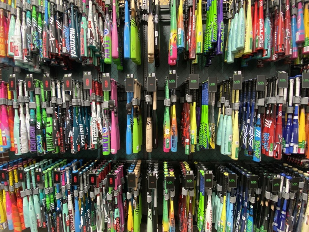 There are also rows of running shoes, an arsenal of pickleball paddles and tennis racquets and shelves of local pro-team merch. An entire section is devoted to sports collectibles, from cards to figurines.