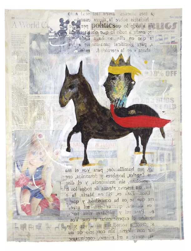 Nelson, the show’s curator, says the artwork in the show verges on political illustration. “There isn’t a single straight piece, and it’s almost all sardonic,” Nelson says. “These paintings hover between graffiti and calligraphy.”