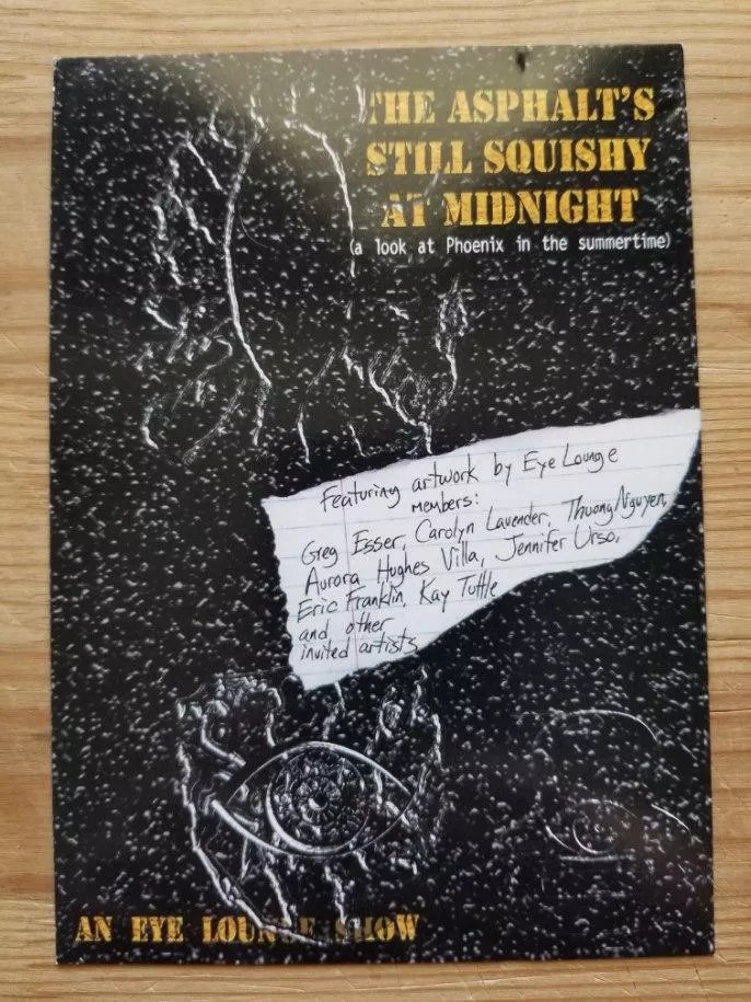 Kristin Bauer: Eye Lounge had a big impact on my art practice. It was the first time I showed text-based work. Eye Lounge was a gateway to the arts community, and I know a lot of people who would have left Phoenix sooner if they hadn’t been involved there. We were all learning together, and I’m still friends with so many of the Eye Lounge artists.