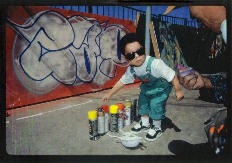 A young Champ Styles tagging along with his dad for some graffiti time.