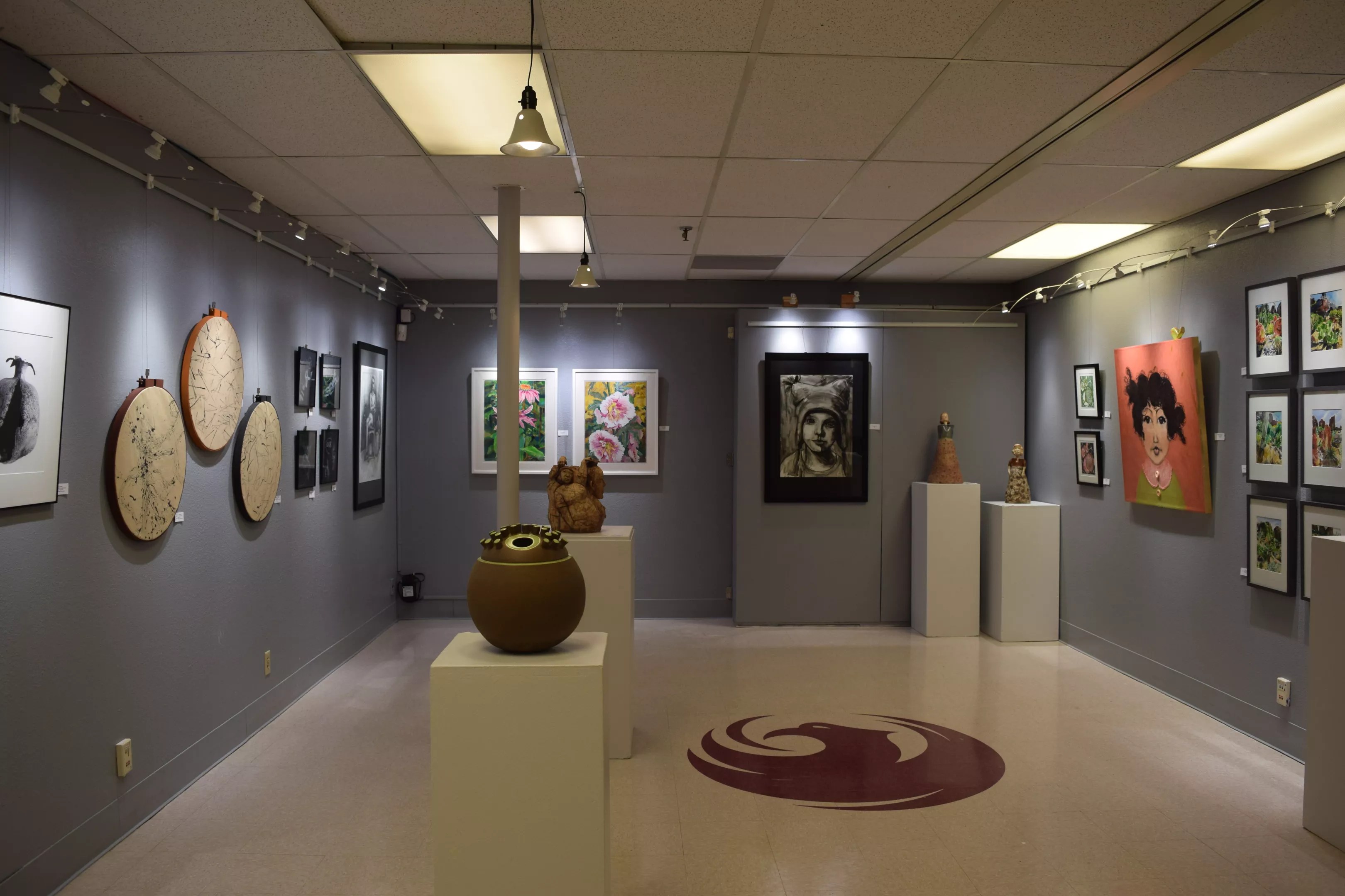Recent Five15Arts exhibition inside a gallery at Phoenix Center for the Arts.