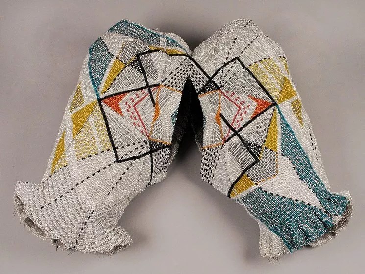 For a new series called “Holding Pattern,” Phoenix artist Angela Ellsworth addresses what gallerist Lisa Sette calls “the secret language pulsing beneath officially sanctioned accounts of history and religion.” The series includes Pantaloncini: Work No. 069 (Emma), created using 52,692 pearl corsage dress pins, plus fabric and steel.