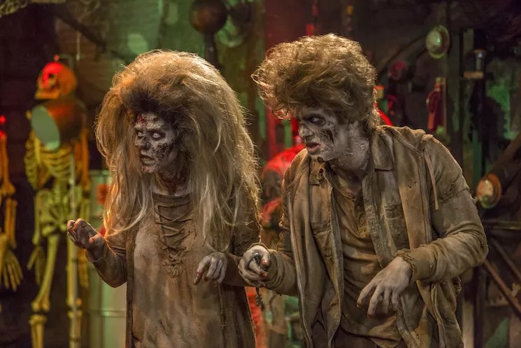Ramona and Jackson make their way to Mighty Mountain, and Steph and Jimmy – in full zombie gear – are able to spot them as they make their way toward their designated scare spot. They pull them into the lab, genuinely unrecognizable in wigs and makeup. They taunt the two tweens by knowing their names and parts of their lives, including the fact that they had ditched DJ’s party because they were “too cool.” Even though it was Jimmy’s idea in the first place, they guilt the two into going back to the homestead.