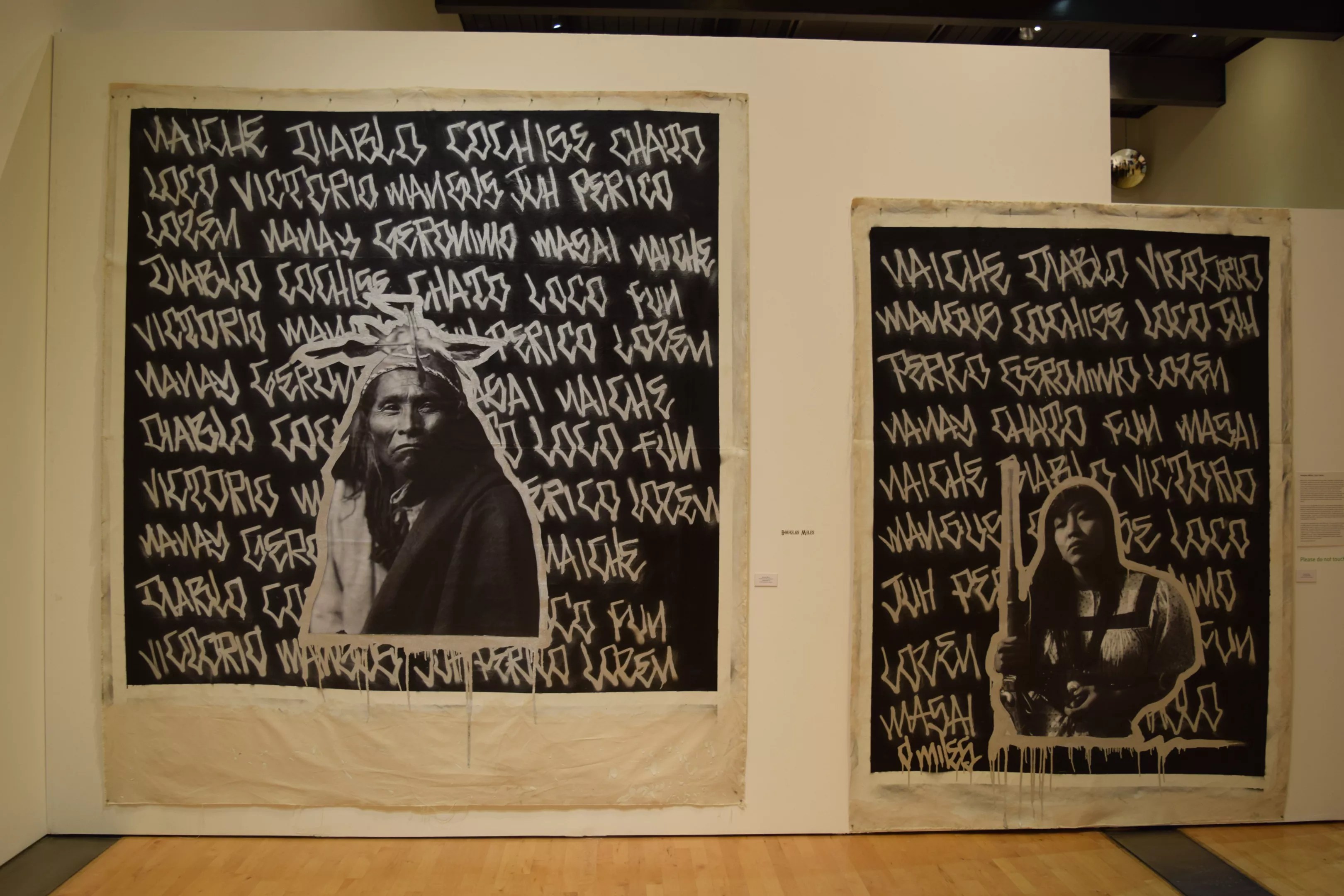 The Apache Declaration of Independence (left) and She Teach War by Douglas Miles exhibited in Tempe.