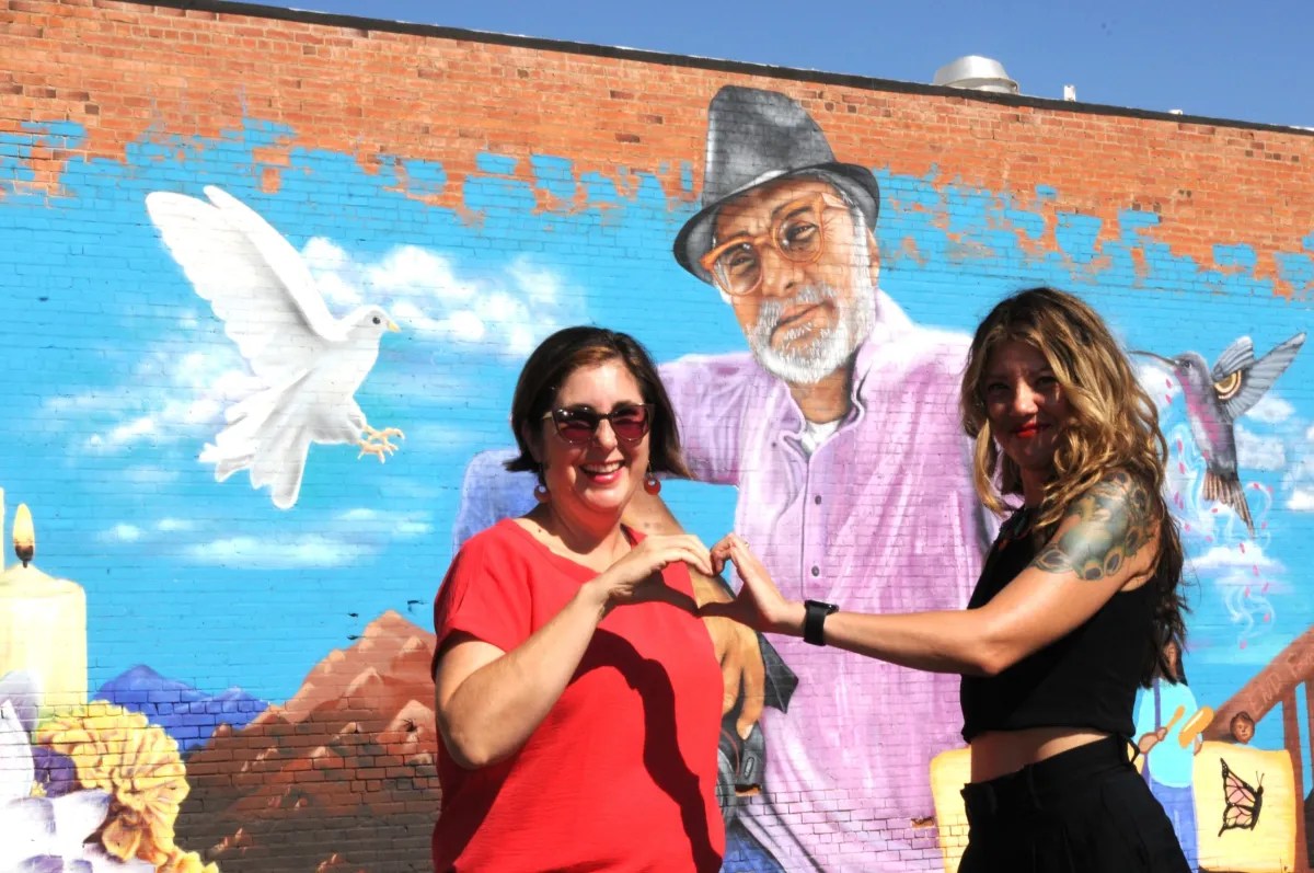 Hinojos painted Oza’s mural in 2022 as a tribute to his life. For inspiration, she channeled a photo taken by Cecilia García, who came to know Oza when he was documenting the lives of immigrants in his adopted home state. And like so many others who crossed his path, they soon became friends.