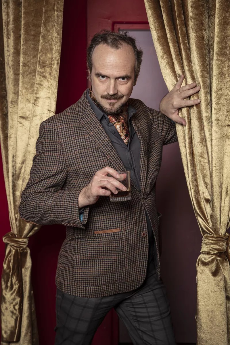 A Perfectly Pleasant Party With Parsley Periwinkle is essentially a cocktail party, although patrons needn’t drink to participate or enjoy the show. That’s just the setting Wilcox chose for his character, who channels an era when dressing up and sipping drinks was de rigueur.